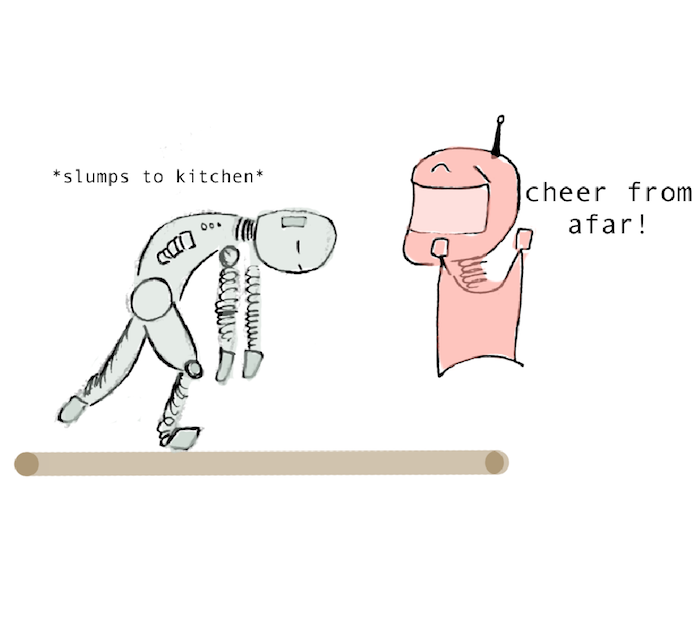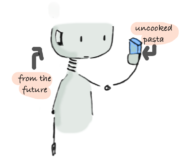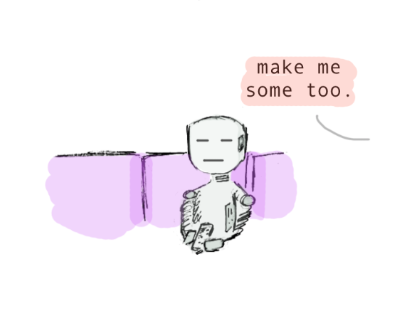 "What century is this?!" "You have to make it yourself! Obviously!" Do robots get lazier in the future