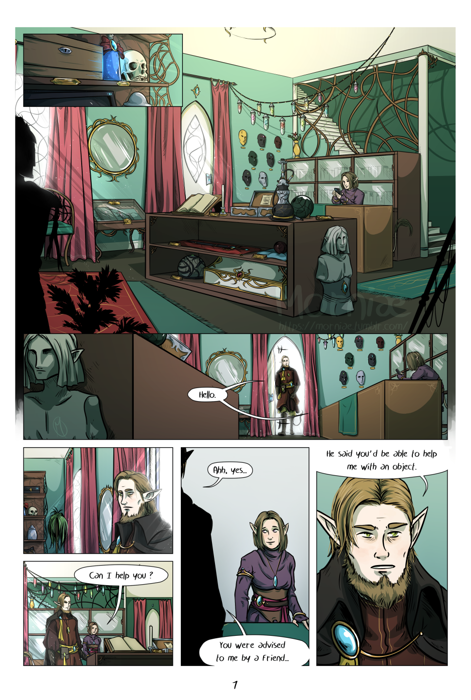 "A rich elf enters the shop of an antiquarian mage,
