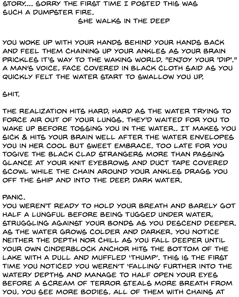 Rando update because a friend accidentally sent me an image that prompted a writing idea. I couldn't figure out how to post text to tapas so I put it in an img file series. It's not cannon on anything and is based off of: