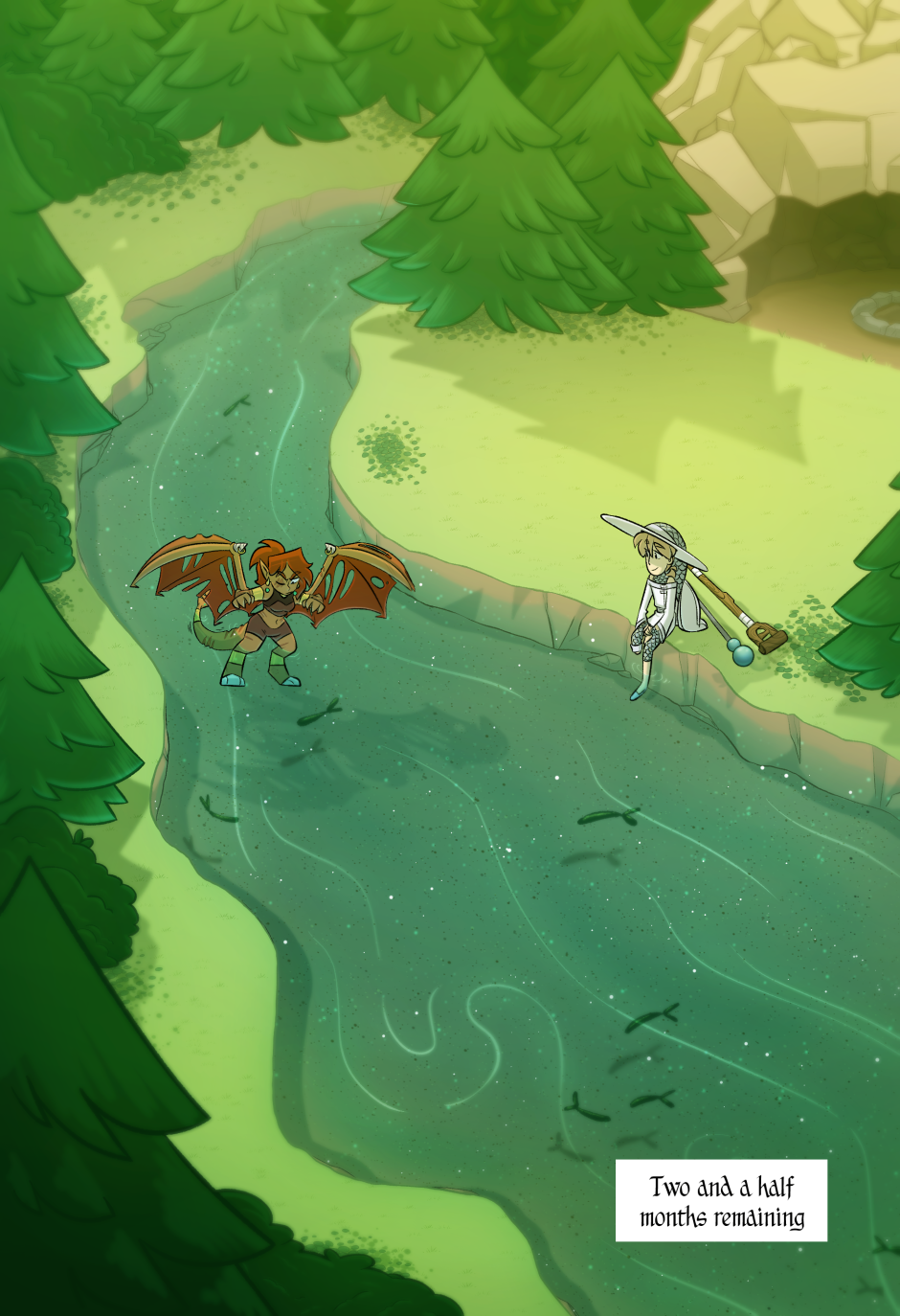 Cal, a young wizard, requests the help of the Demoness, Ariel, to recover a stolen relic before the flower within it blooms. Cal struggles with an inner conflict due to injury from failing to protect the relic and inadequacy due to the weakness of their magic. Ariel is a badass treasure hunter with her heart closed off to those around her and a tragic past of her own. The two learn more about themselves and each other along the way and ultimately, Cal has to make a choice.