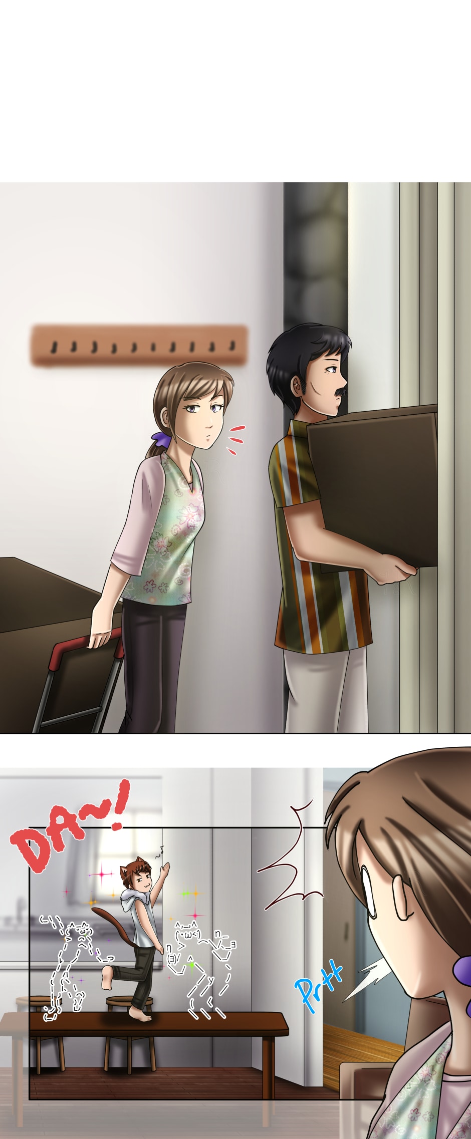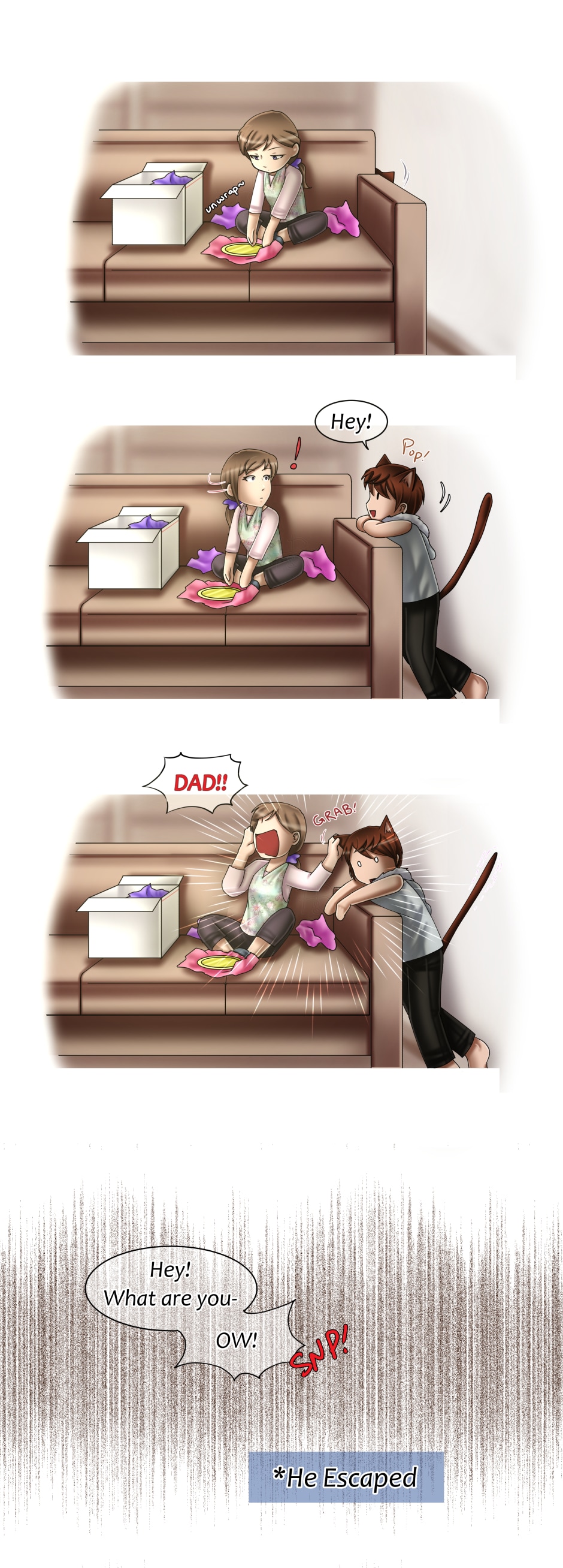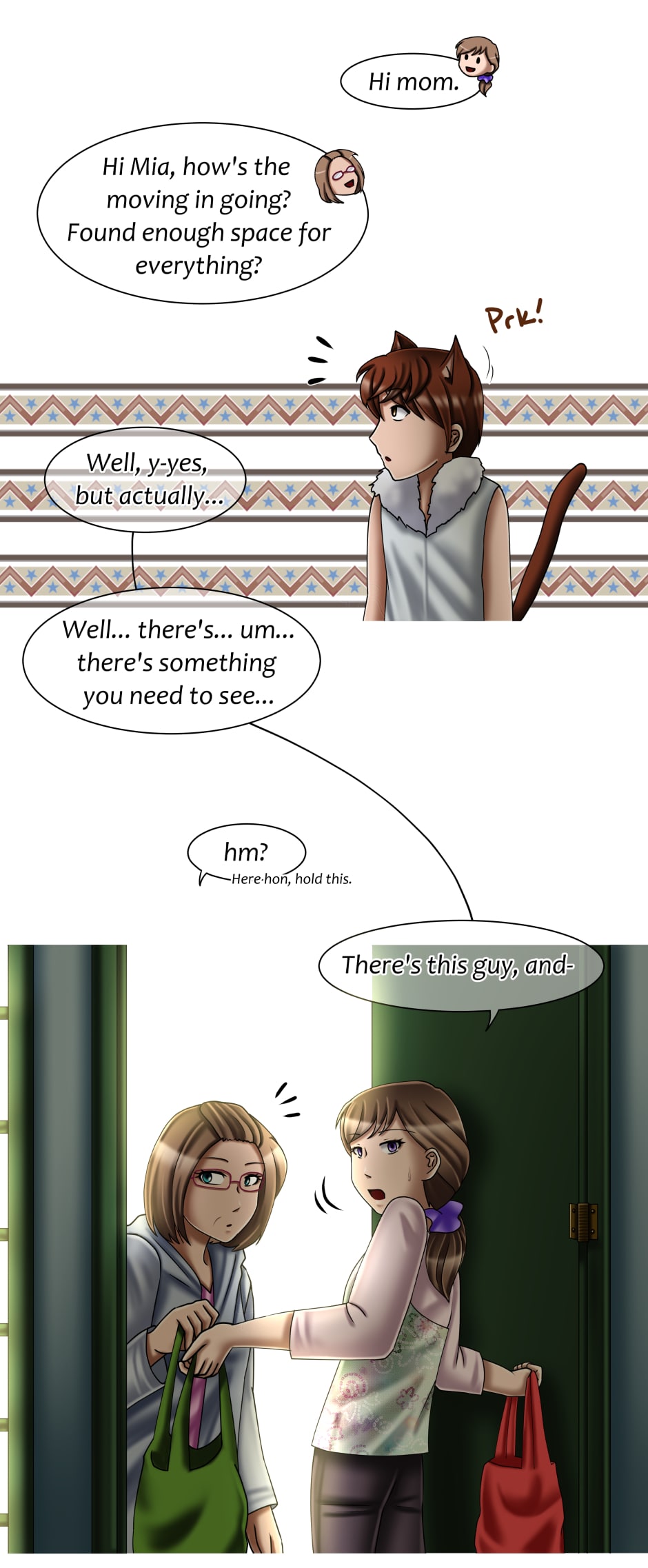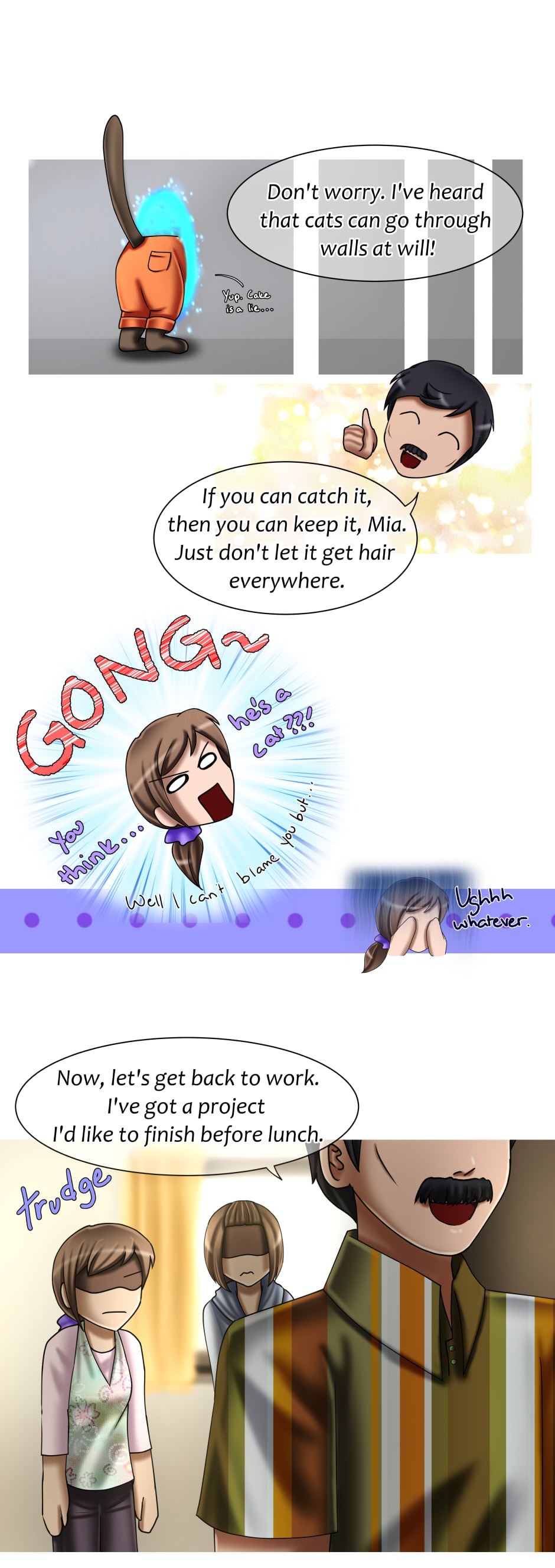 Mia has recently moved into an old neighboring house... only to find a very unique squatter! She calls him "Tom" and this young man has *quite* the feline personality.