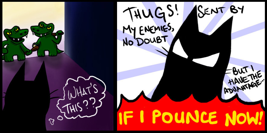 What happens when thugs lurk near the entrance of the 'Catcave'? (And what happens when DK's imagination runs away a bit...)