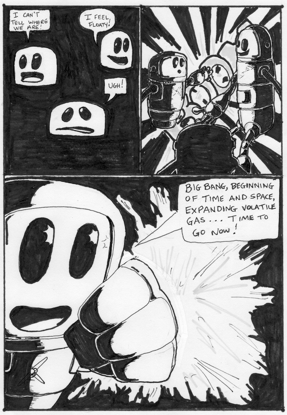 SCI-BOTS: Adventures in Science is a comic book representation of science concepts for middle school students. Physbot, Biobot, and Lithobot wander through time and space discovering things about our world and getting into all kinds of trouble along the way. Concepts of Physical Science, Life Science, and Earth Science will be learned along the way.