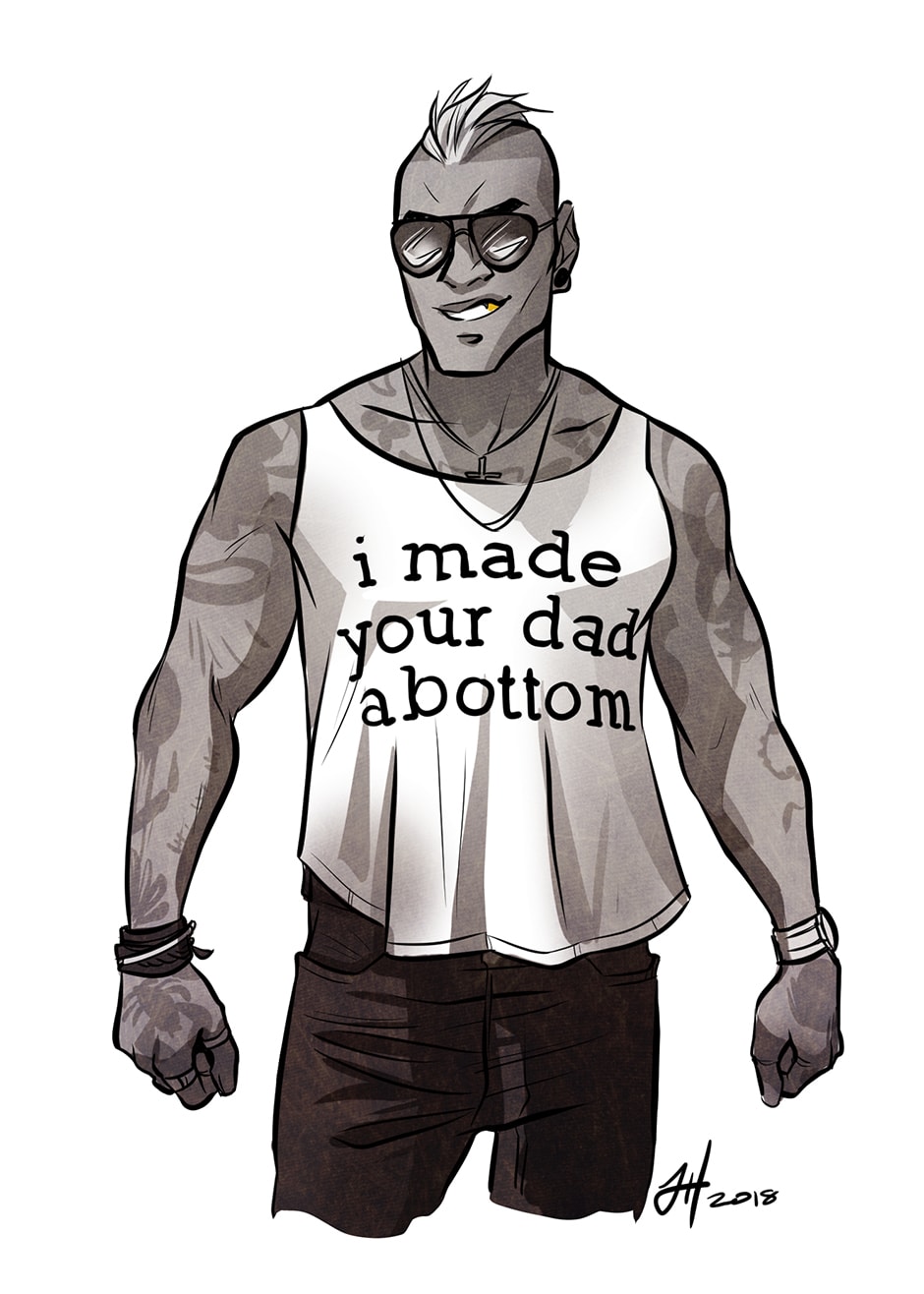 (If Gammon looks a little more naked than usual, it's because I procrastinate on rendering his tattoos until I absolutely HAVE to.)