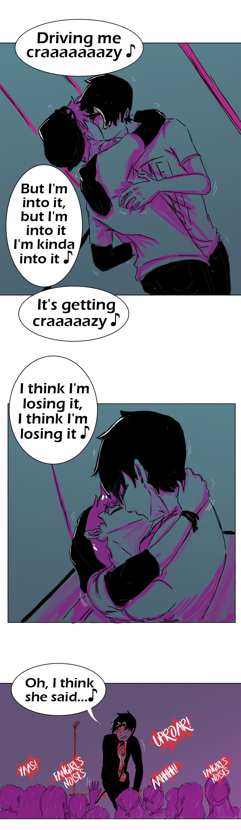 It's an alternate universe where the boys are members of a local band (yeah, they're of legal age). --> KIDZ, DON'T DRINK!! <---