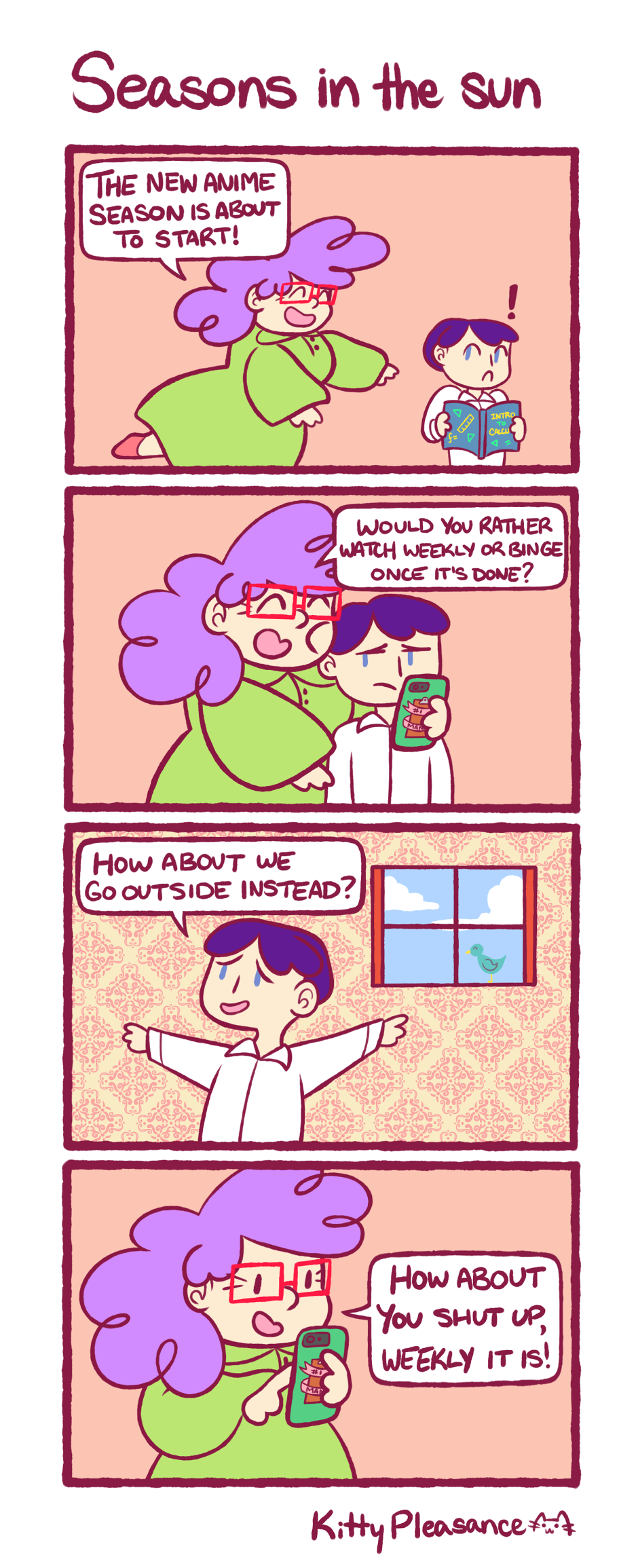 Ha go outside? In the summer?? Summer is for anime. (This actually timed up with the new anime season and I'm shook??? Go me lol)