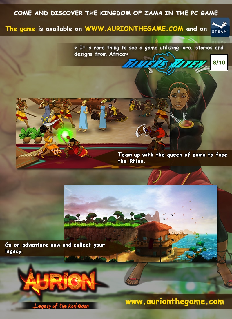 Aurion is an action-packed journey that will bring our two heroes across the entirety of a beautiful, uniquely rendered African fantasy world. Rich in detail carefully designed and fully realized in scope, the world of Aurion stands apart from most any other video game universe.