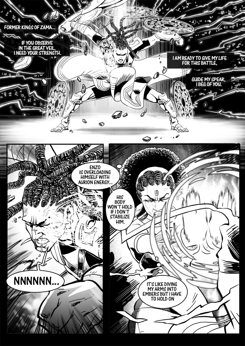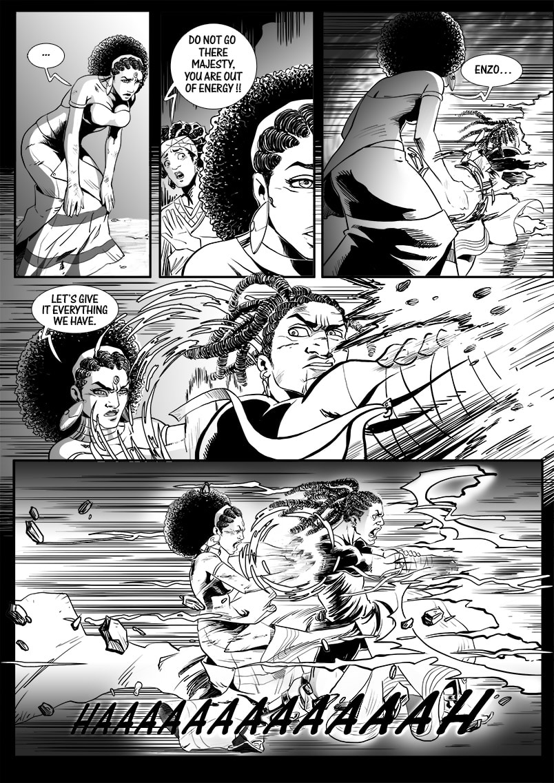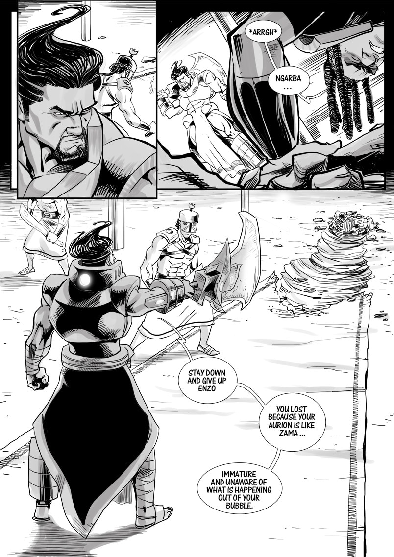 Enzo Kori-Odan, prince of Zama city suffers a coup d’état conspired by his brother-in-law Ngarba Evou on his coronation and wedding day with Erine Evou. Exiled in shame, the royal couple travels the world, gain strength, and assemble their Aurionic Legacy, in hopes to return to Zama and claim what was taken from them.
