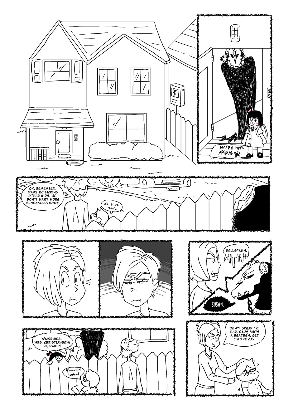 "Her Guardian" is the story of Isobel, a six year old girl, and her caretaker Beherit, a fearsome yet responsible demon. Together, they face the challenges of suburbia. Nosy neighbors, school, parenting, yard sales, and the supernatural... All of this is ordinary life for Isobel and Beherit.