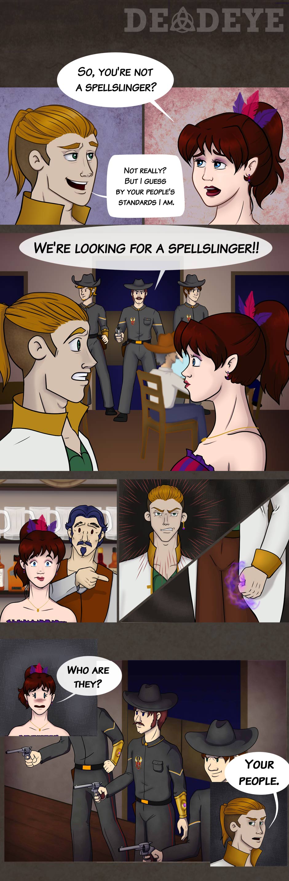 Sorry it's been so long since I updated here! Pages have been going up on DeadeyeComic.com but I forgot to upload on Tapas! I'm about to do a BUNCH of uploads at once! Yay!