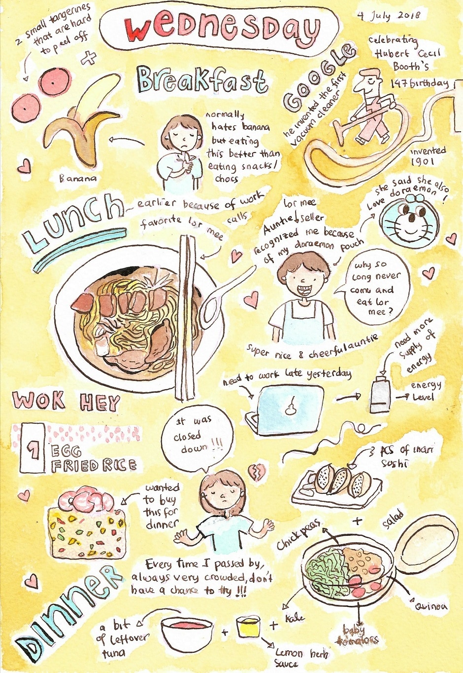 I had banana, 2 small tangerines, lor mee, 3 pcs inari sushi, quinoa salad