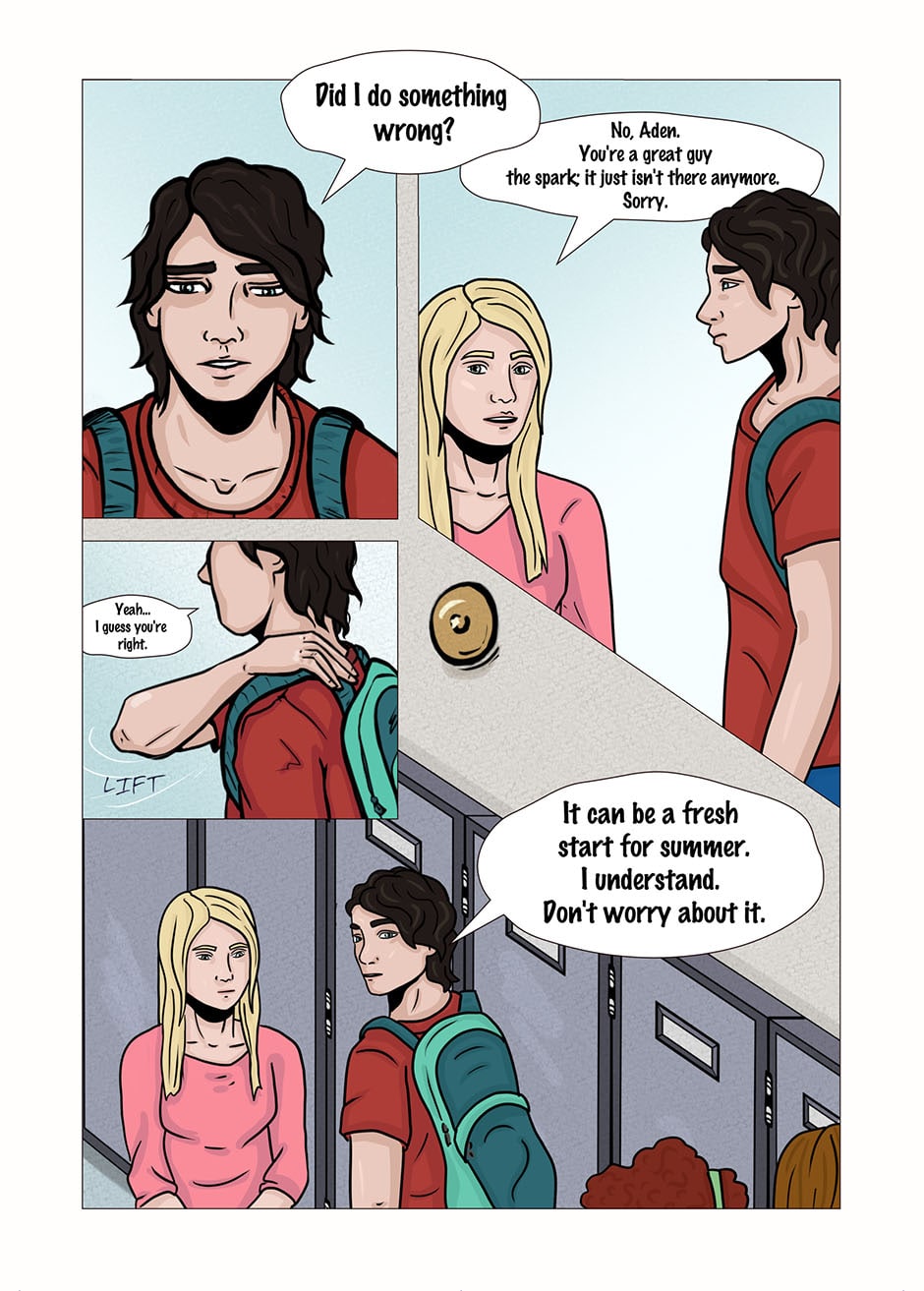 The last day of school his girlfriend calls it quits.