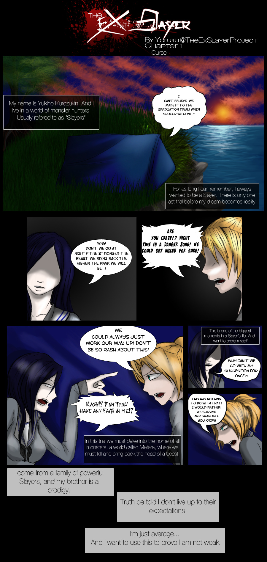 Yukino grew up in a world of monster slayers. All of her life she has been hunting creatures of fantasy and legend, or perhaps monsters that haunt your nightmares. However before she becomes an official hunter she must bring back the head of a beast.