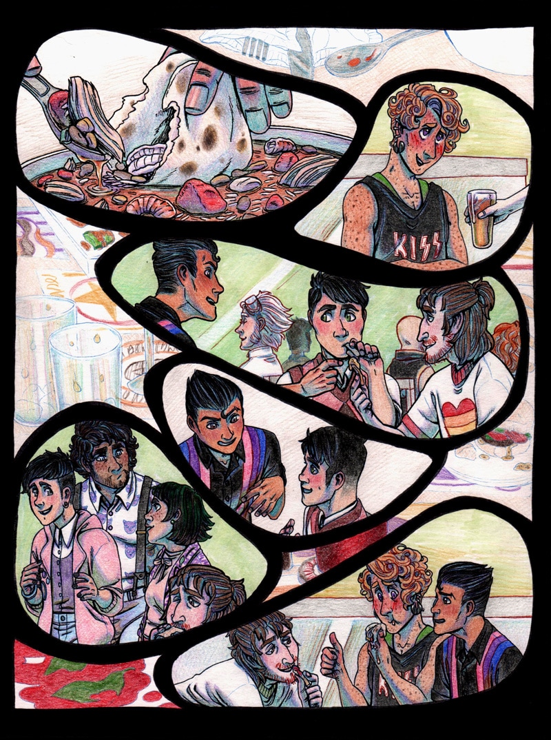 I really love how these panels are laid out and how they give the passing of time an interesting feel...a little bit, idk floaty? Like time would pass, when you spend it with friends. Also, thank you for including our babes. They look amazing in your style. I'm always super floored about how amazing your pages look and the time and effort that goes into creating them ;;