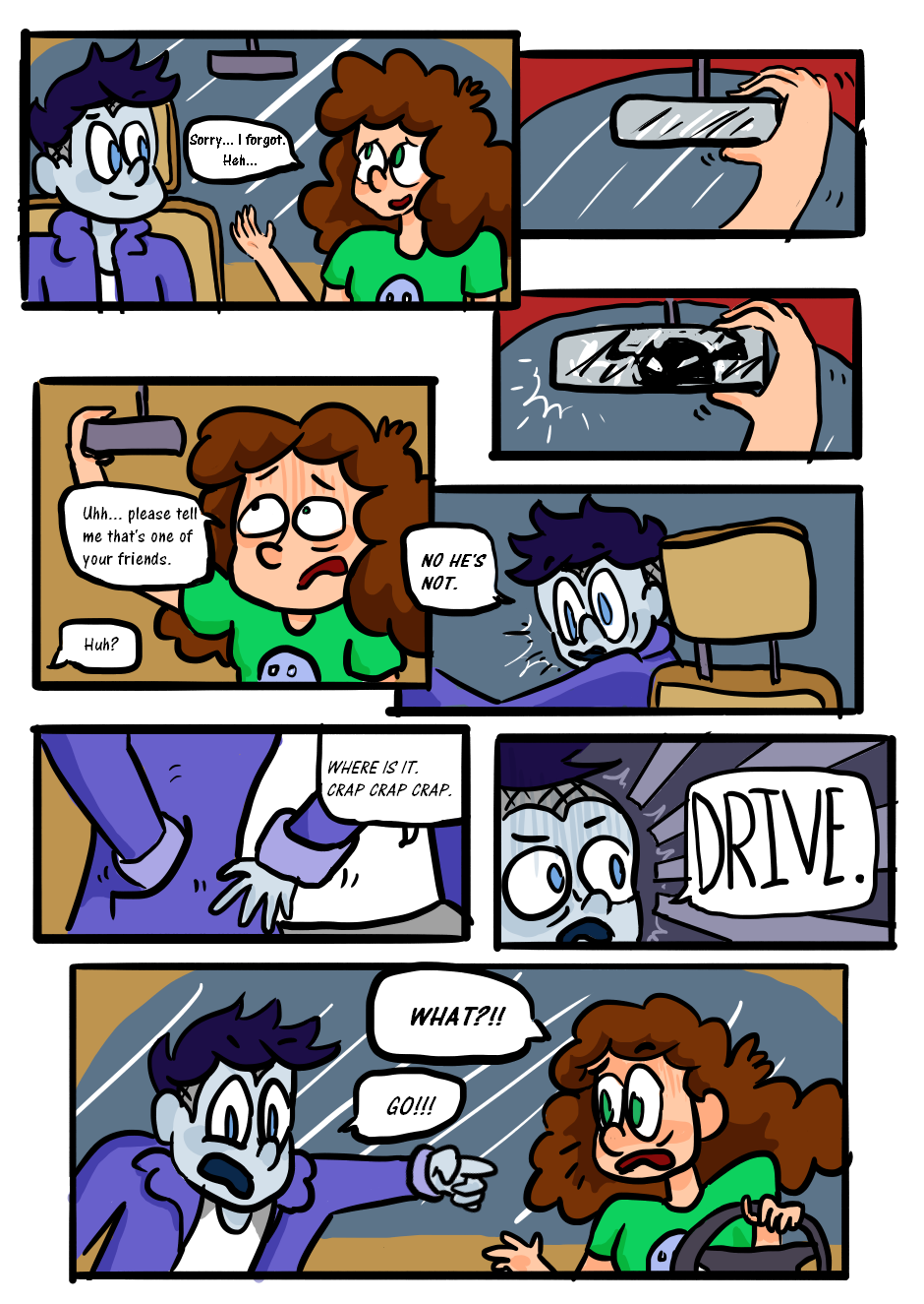 Eleanor sees something distressing in the rear view mirror