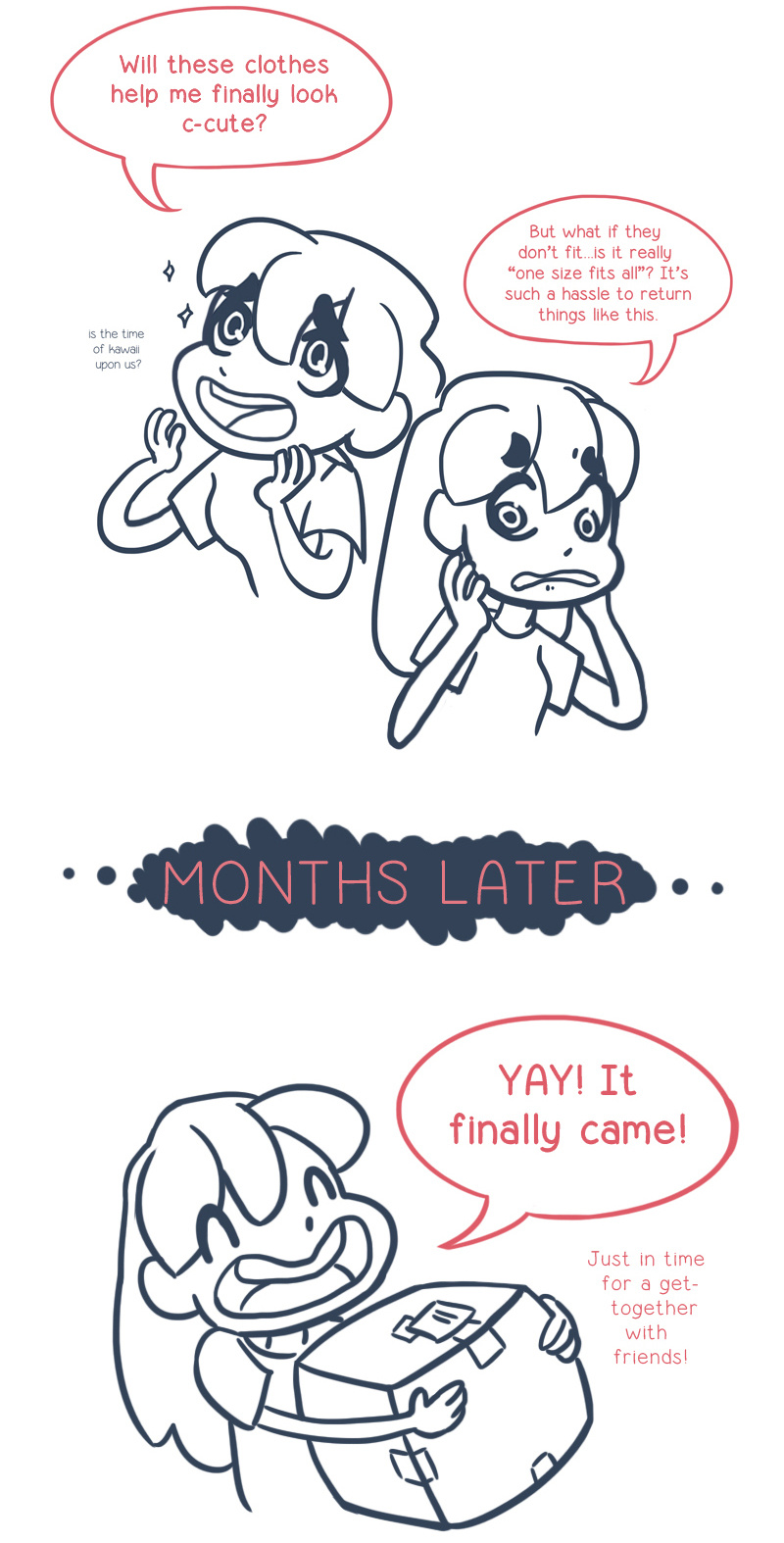 This is a series of illustrated thoughts based on my experiences with college, family, romance and metropolitan life.