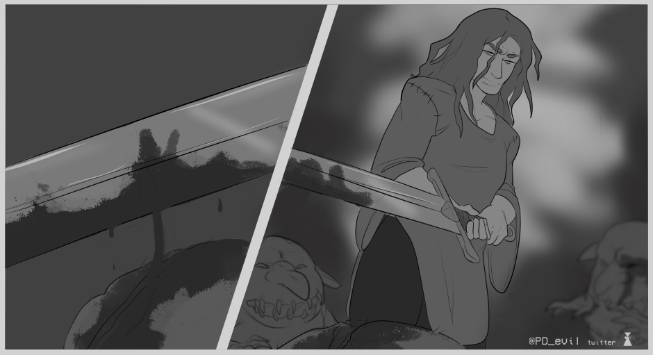 a one-off wlw love story following a monster-smiting-paladin of the Isle Yalesh who has an encounter with a curious kelpie. A sketchy/practice comic of sorts to help me get a footing with making stories