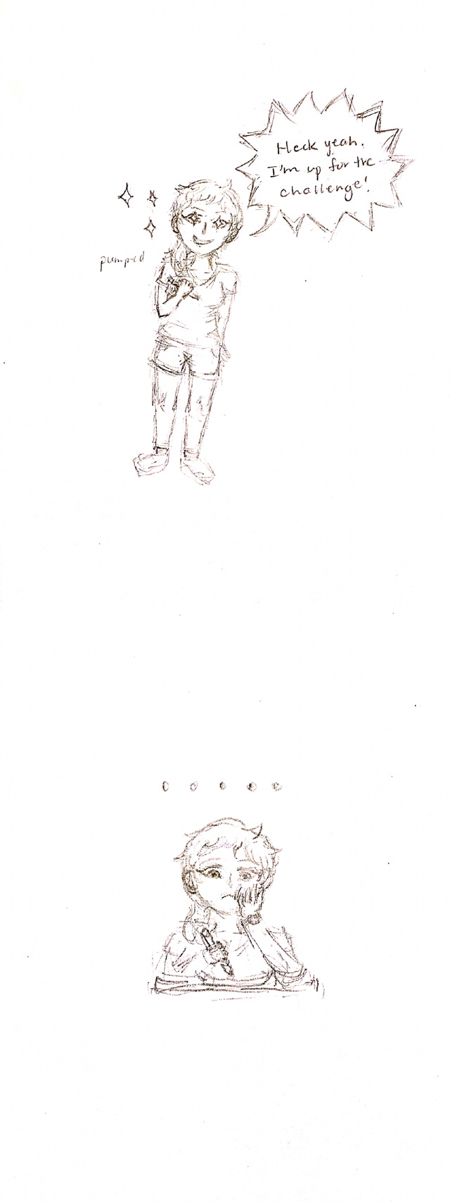 My attempt at drawing a mini comic. I'm still getting used to formatting. It took foreveer… There's a lot of tiny dots because of eraser crumbs. ✏️ I'm thinking of starting a Webtoon, but I'm not sure when exactly…