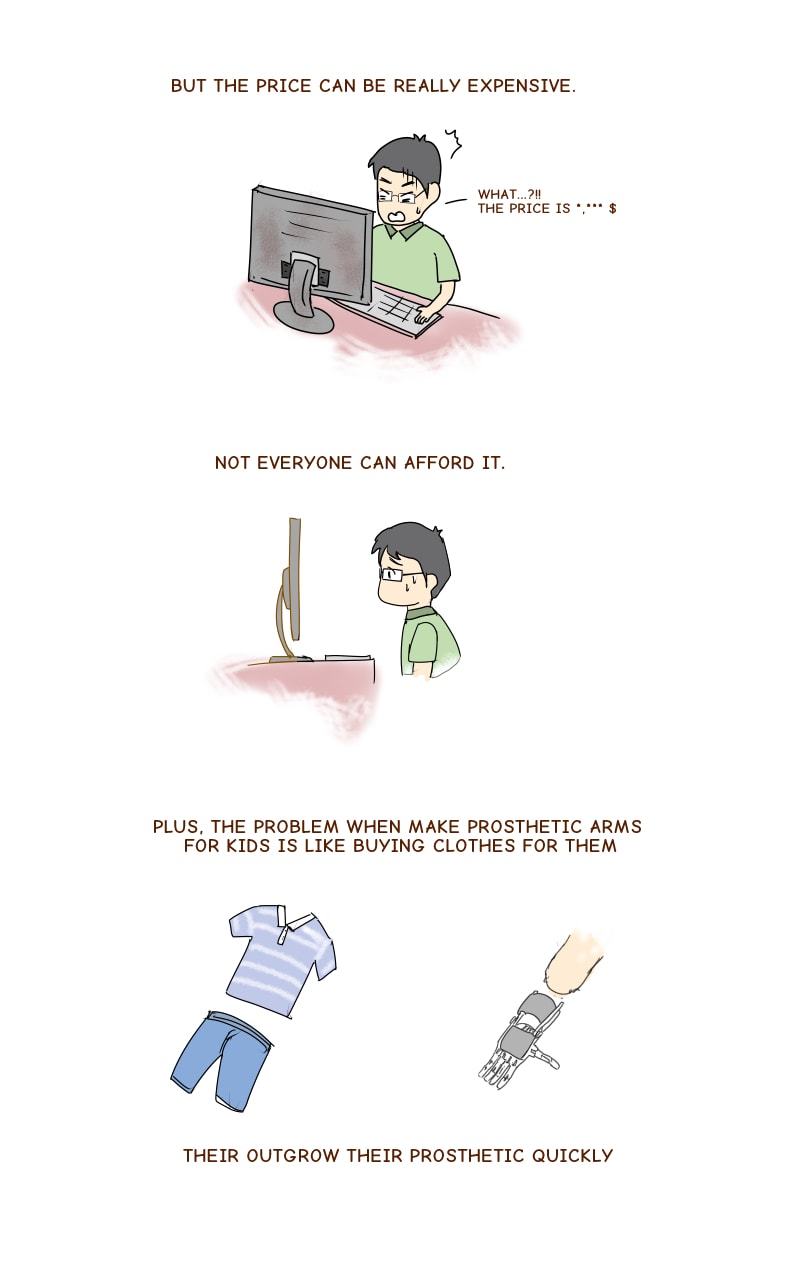 The prosthetic hand need to be change for every two years for growing child. 3D printed make it affordable for every parent ( less than 80$). Modern prosthetic can cost thousand dollars which is financially impossible for most parents