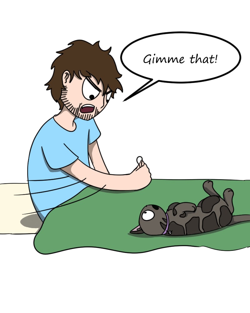 We really can't figure out if he is a genius or stupid... I have also lost WAY too many hairties to this game...