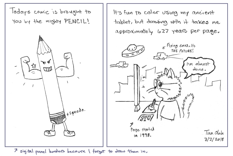 I'm confused. Is your ancient tablet not just a piece of paper or do you mean the second comic is with an older digital tablet? They both look like pencil.