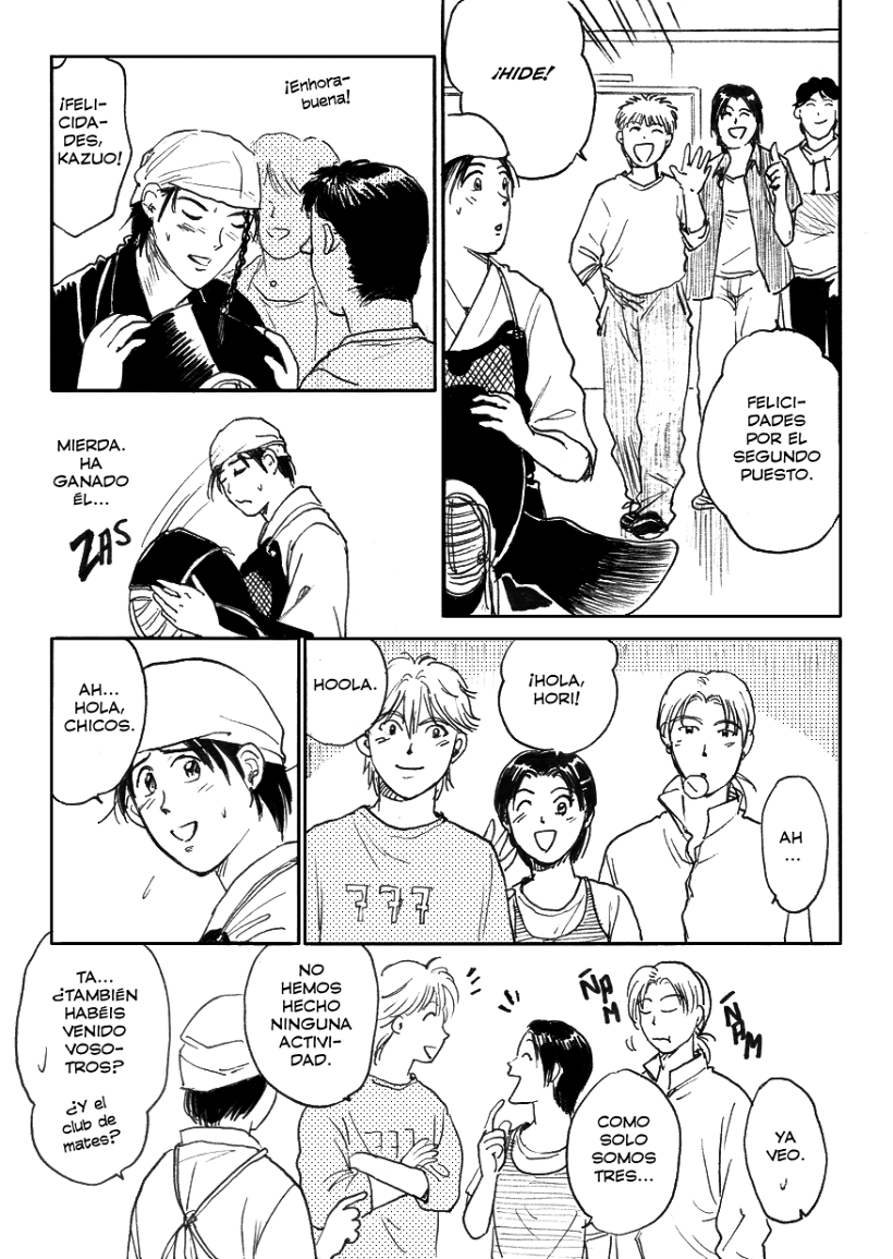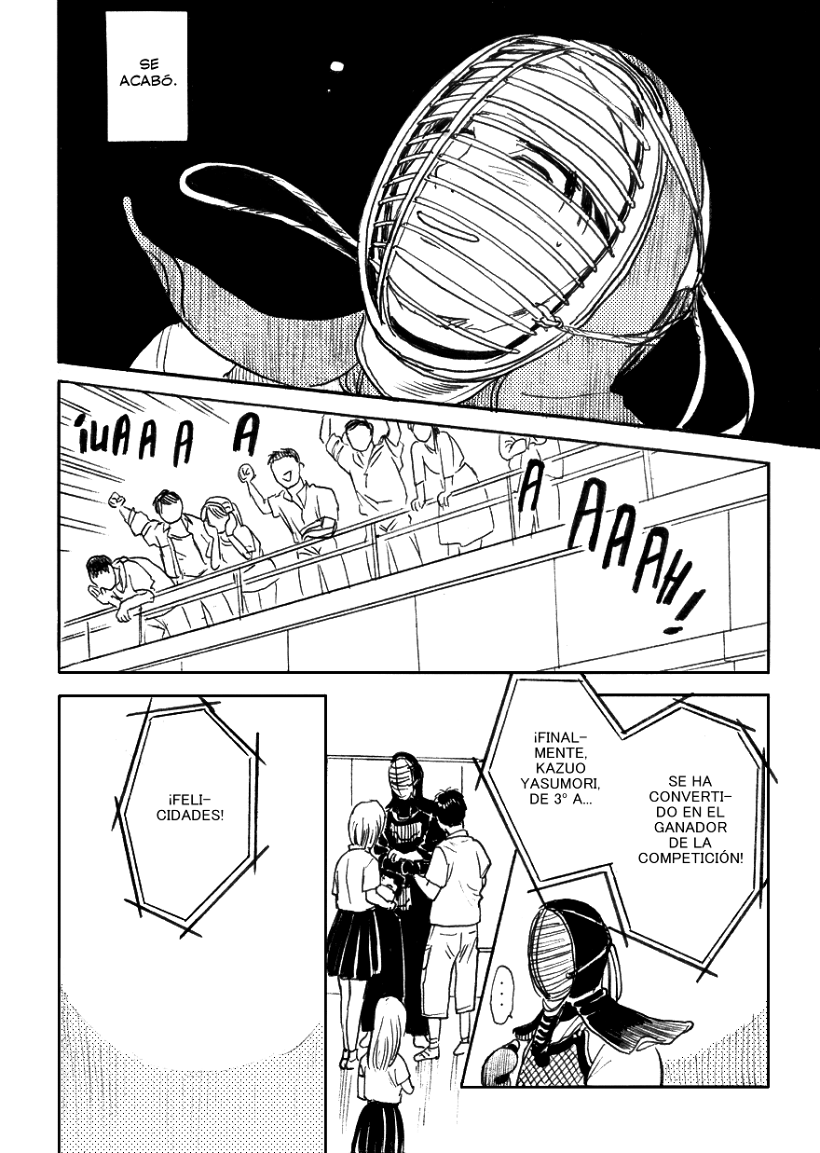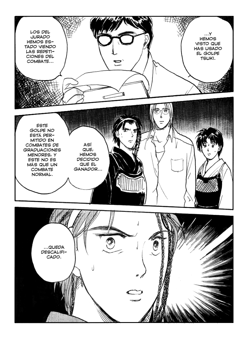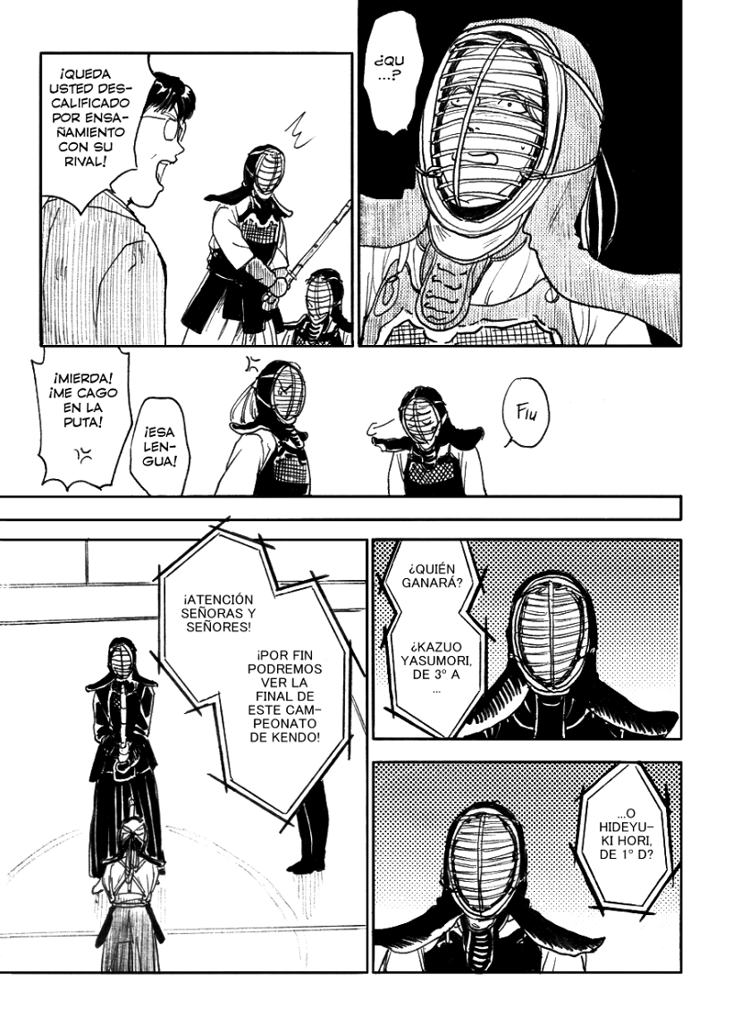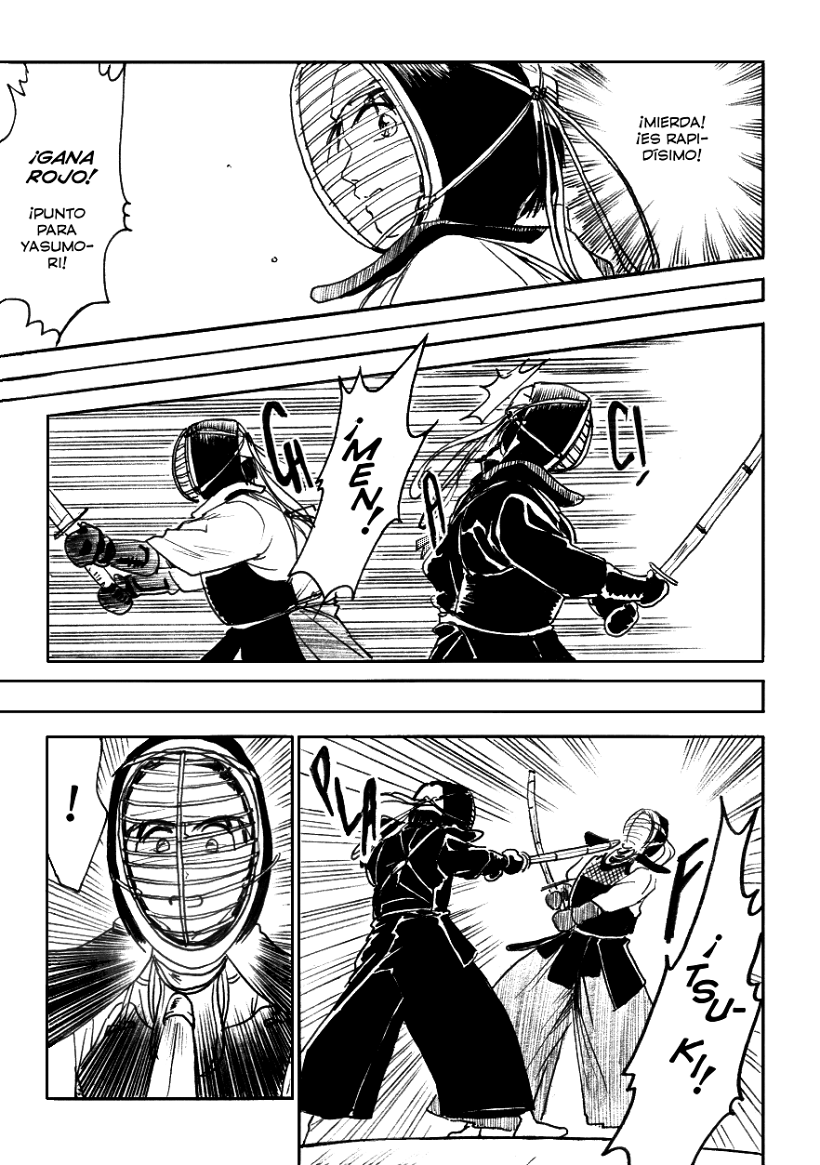 Hide pierde por un "tsuki", un ataque a la garganta muy complicado de hacer, incluso peligroso si no se tiene la habilidad. Pero esto es un manga, así que podemos fliparnos lo que queramos. Y si alguien sabe de kendo lo suficiente, ya se imaginará qué pasará después.