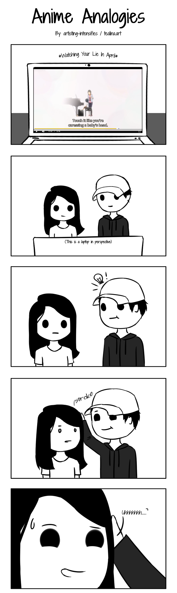A moment of randomness. Hope the anime screenshot is readable. I'm not sure if I want to continue the comic on a regular schedule. However, I still want to keep this ongoing. Haha, the style keeps subtly changing each time.