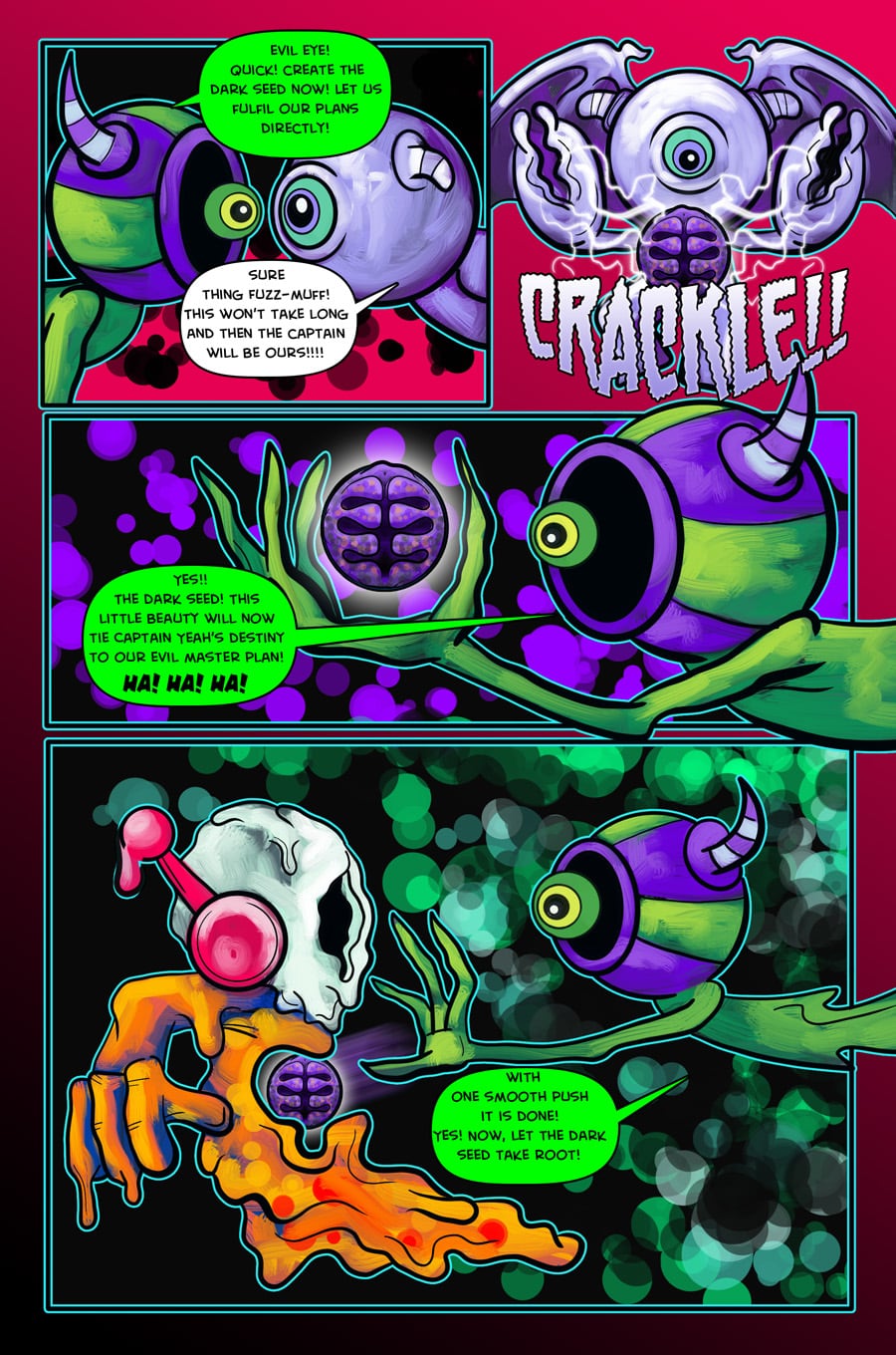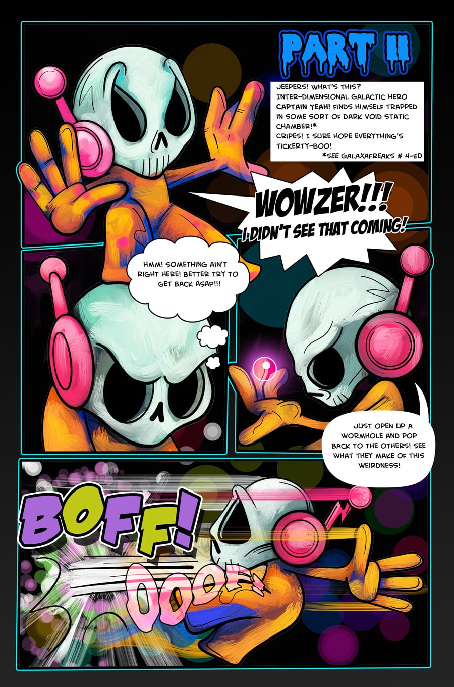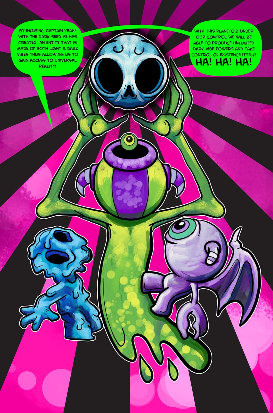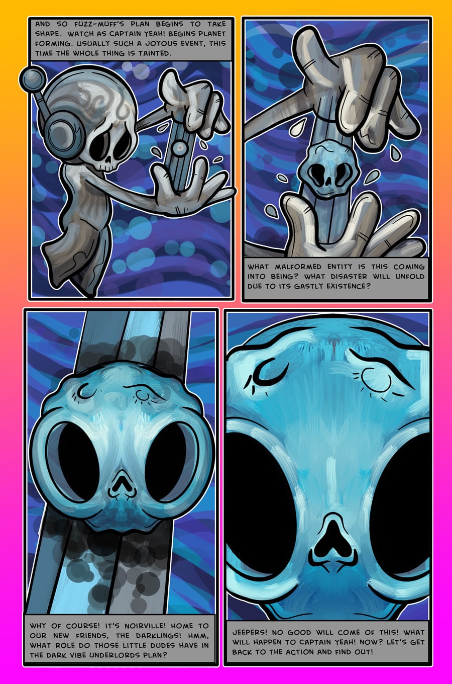 In the first chapter we meet the Darklings. One Darkling in particular is different from all the rest! What has Meeko got to do with the origins of her planet and what is her relationship to the Cosmic Giant Captain Yeah!?