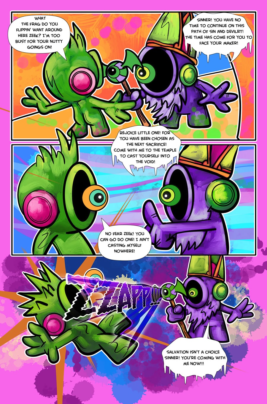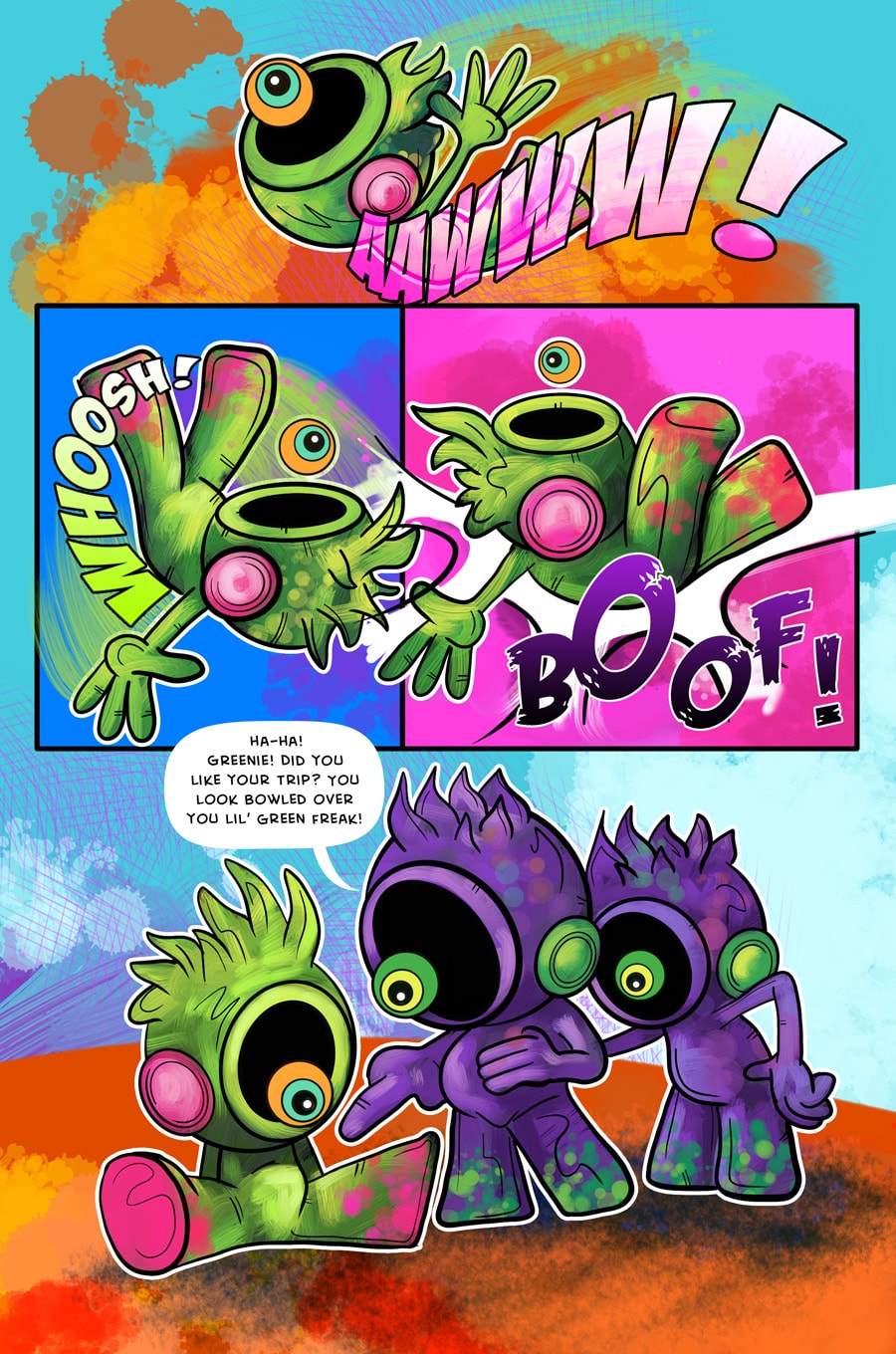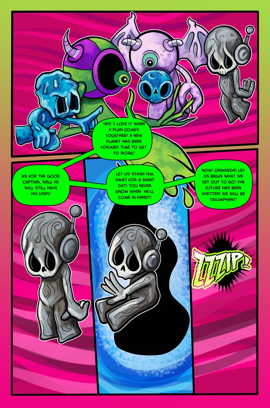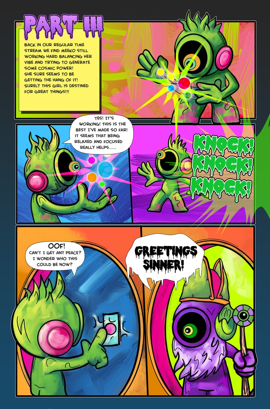 In the first chapter we meet the Darklings. One Darkling in particular is different from all the rest! What has Meeko got to do with the origins of her planet and what is her relationship to the Cosmic Giant Captain Yeah!?
