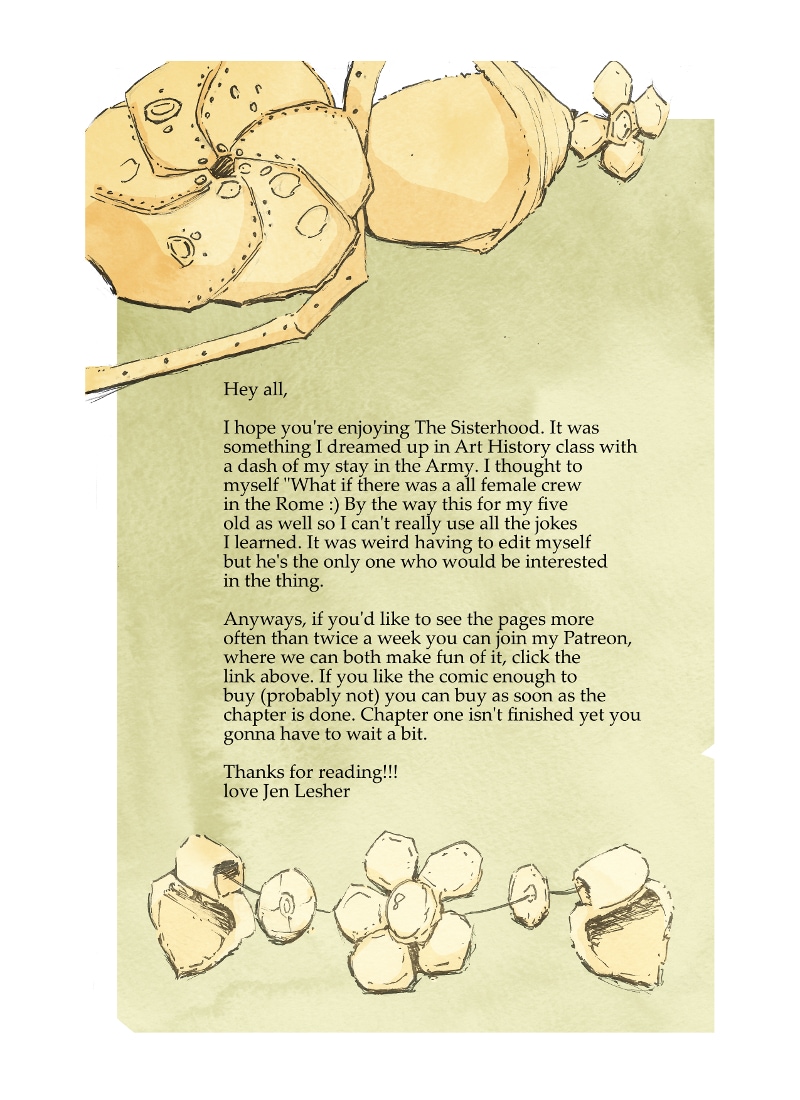 It's a what if story where the Roman empire never ends. I got the idea from letting my mind wander in Art History class. I'd also imagine what it would be like if there were female soldiers. There is also a heavy influence from the Three years me and my husband where in the army. Which turned it into a comedy. My experience was lots of laughs with buddies and every so often a bit of drama. marching while singing a cadence was really fun. We even got to sing the Sponge Bob theme. My GREATEST day is a tie between riding a Chinook helicopter and when we were told we didn't have to wear our useless berets. No only did they NOT give you any sun protection but they took hours to make look right. Unless you're a captain of course then you can wear it like a chef hat.