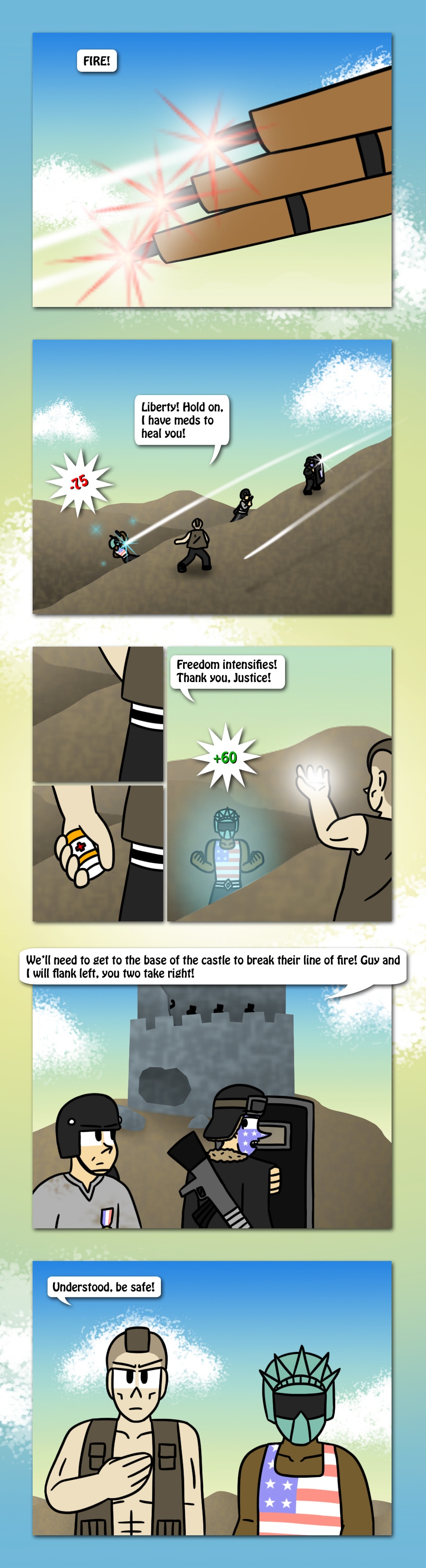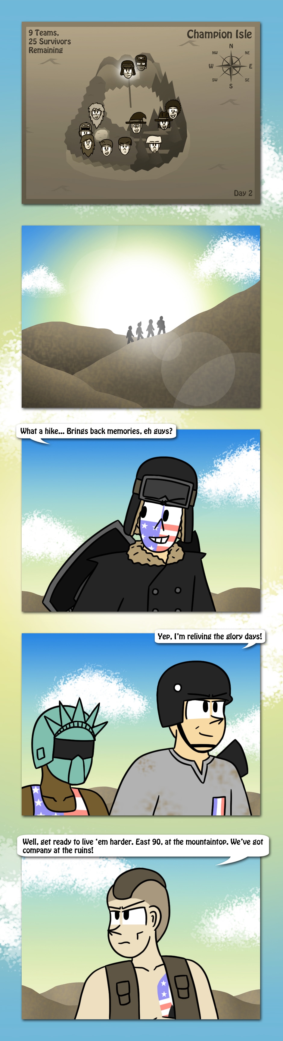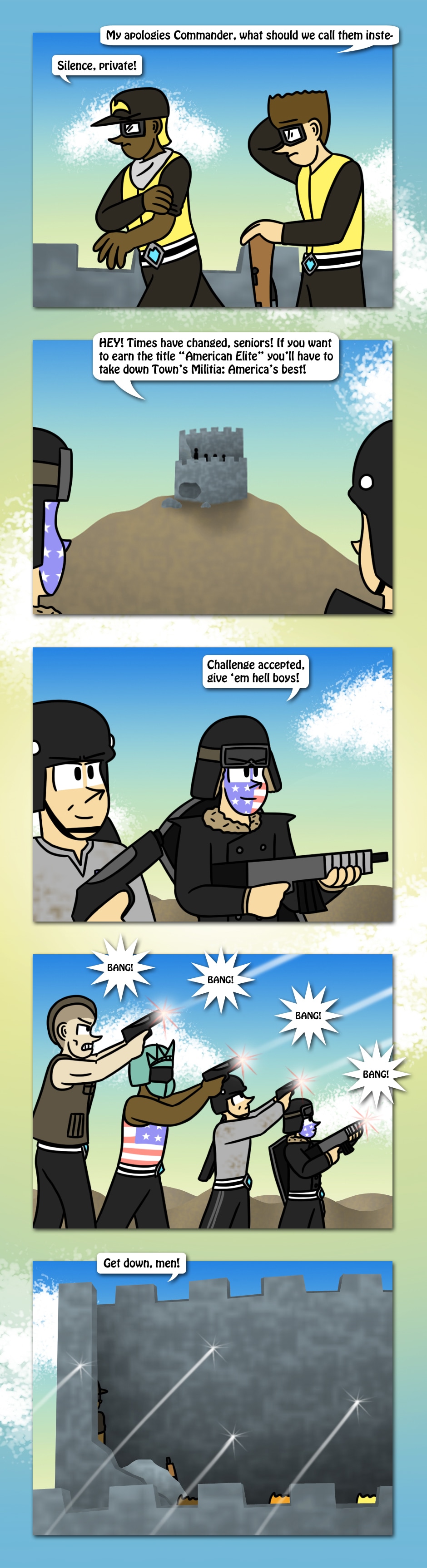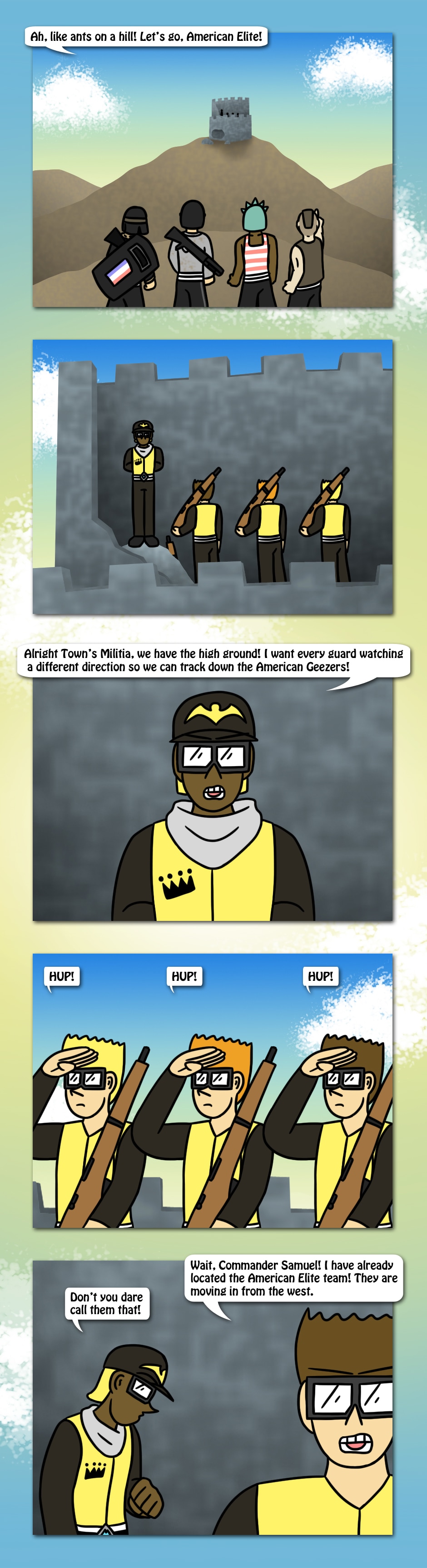 The American Elite team scales the mountains of Champion Isle to find that Town's Militia has taken position at a ruined fortress. Who will win as two patriotic teams collide in the castle?
