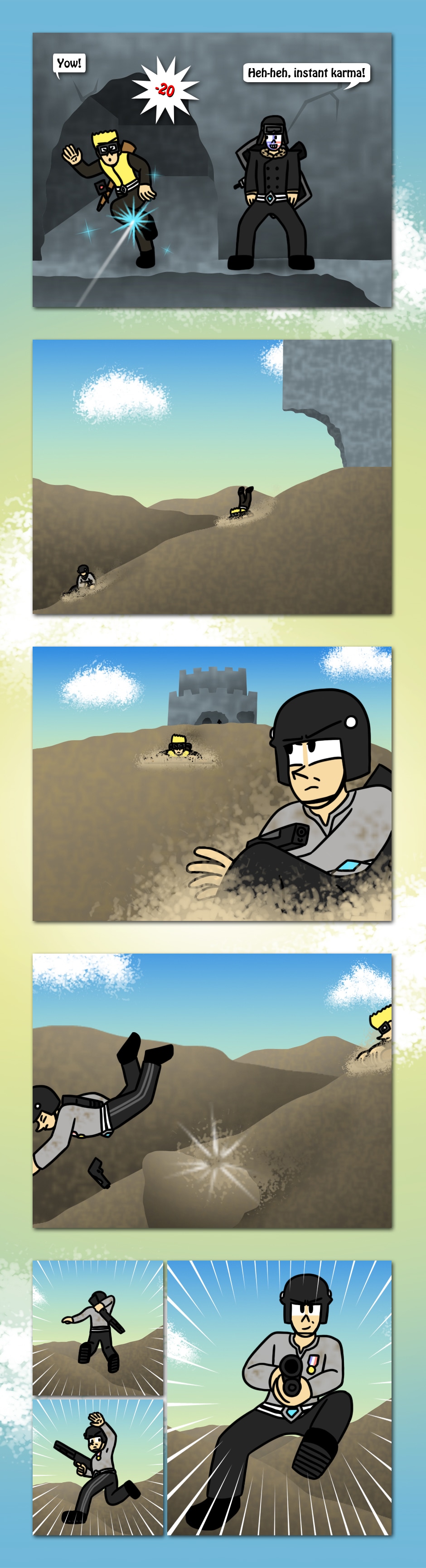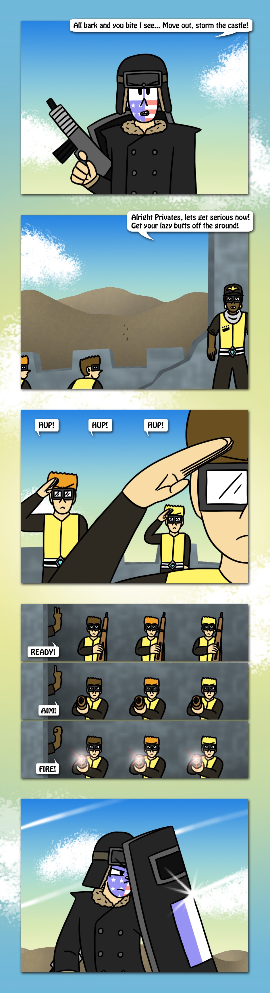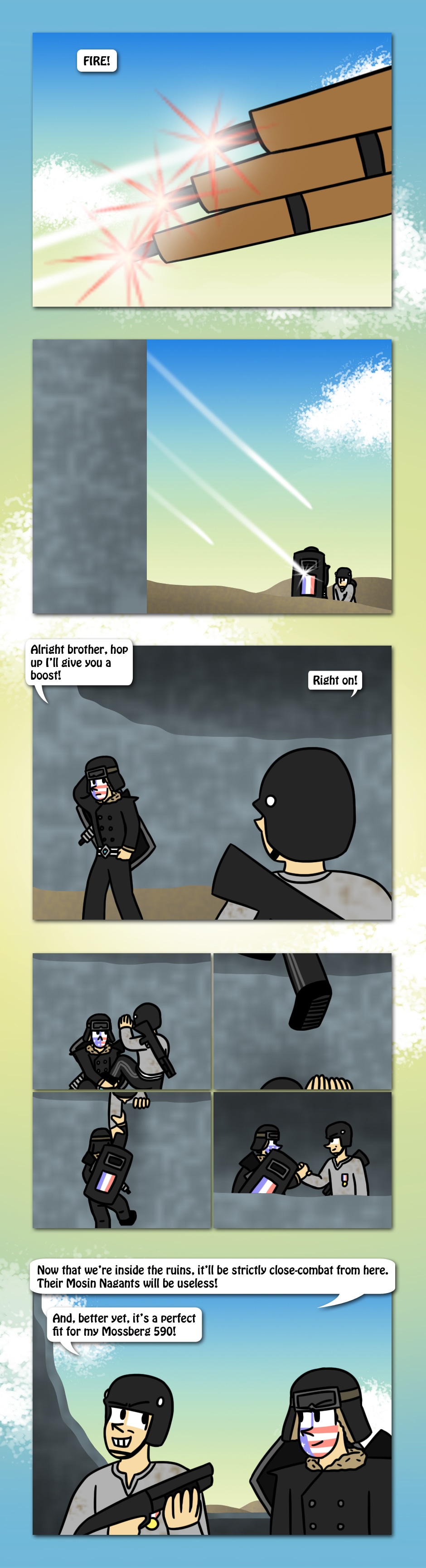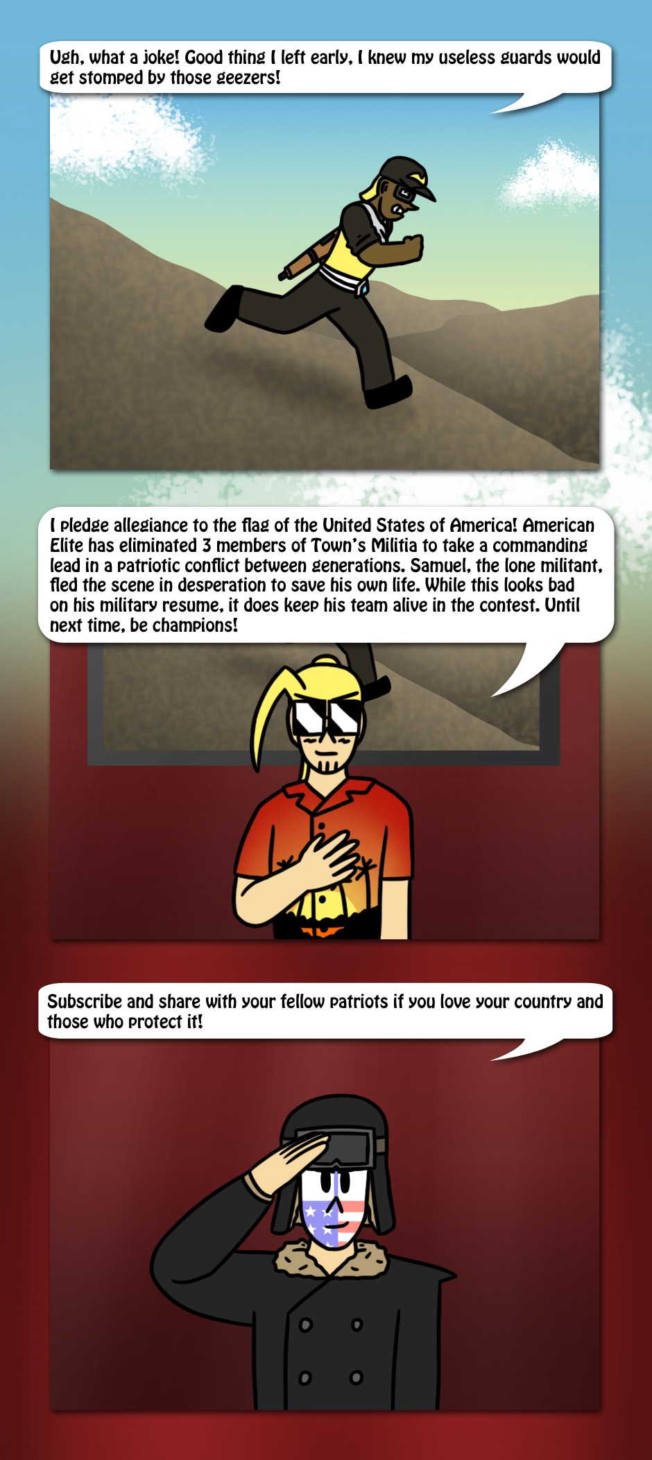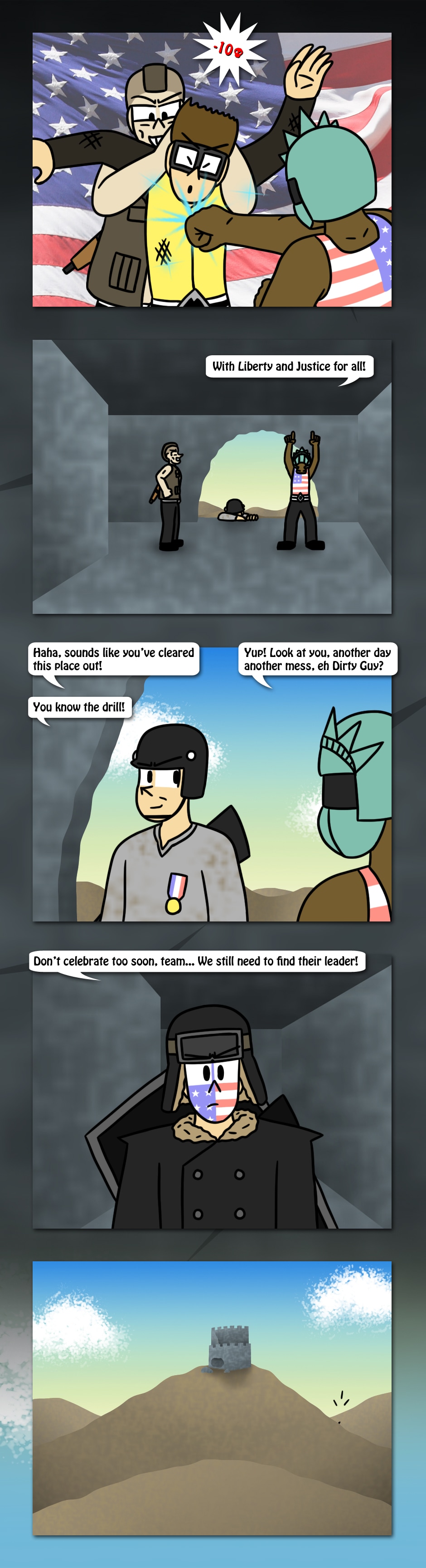 The American Elite team scales the mountains of Champion Isle to find that Town's Militia has taken position at a ruined fortress. Who will win as two patriotic teams collide in the castle?