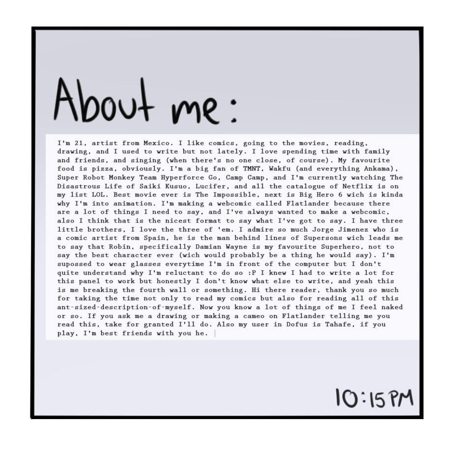 Also, I'm planning on a dynamic for you to be on the comic/win free sketches, so if you want to know about it, subscribe to the series and, IDK, tell others about Flatlander if you like it :)
