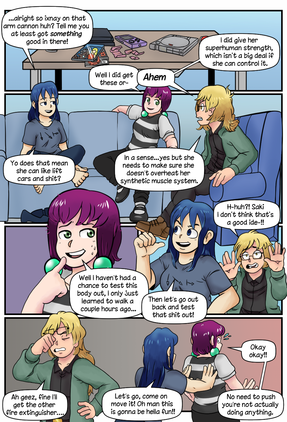 Ohhhh she used to be human and now she has to figure out her robot body, makes sense that she can't master her bodyparts right away (like in many movies)