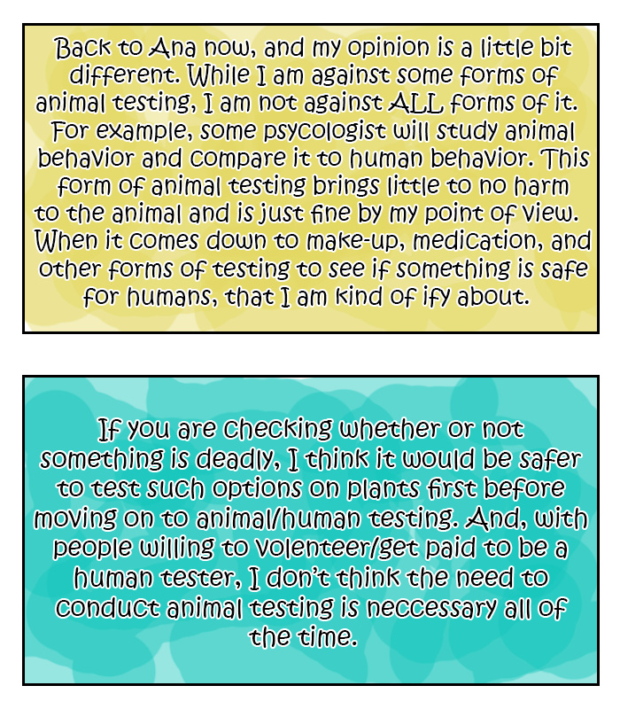 One day I told the class just how badly I hated animal testing, then my classmates laughed at me and said, "so how else are we going to know if this medicine works or if this beauty product doesn't kill us?"