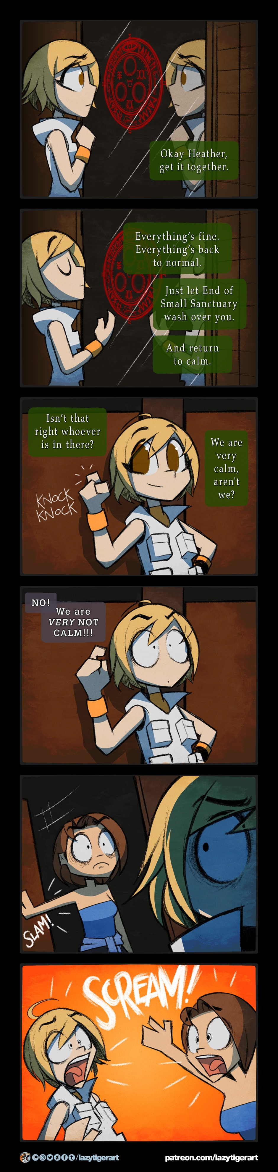 Heather attempts to collect herself, but her small sanctuary comes to an abrupt end.