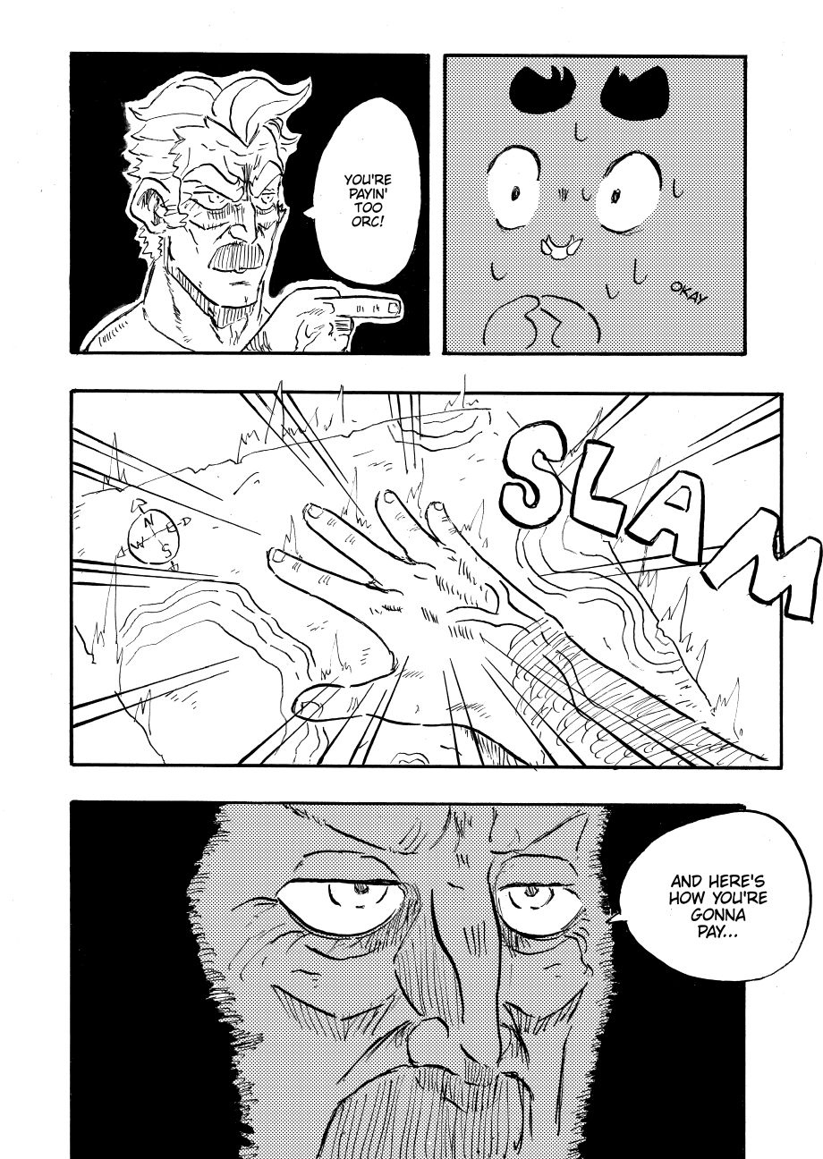 After aiding the Paladin in her fight against the Ogre the party finds themselves at the mercy of a angry middle-aged man.