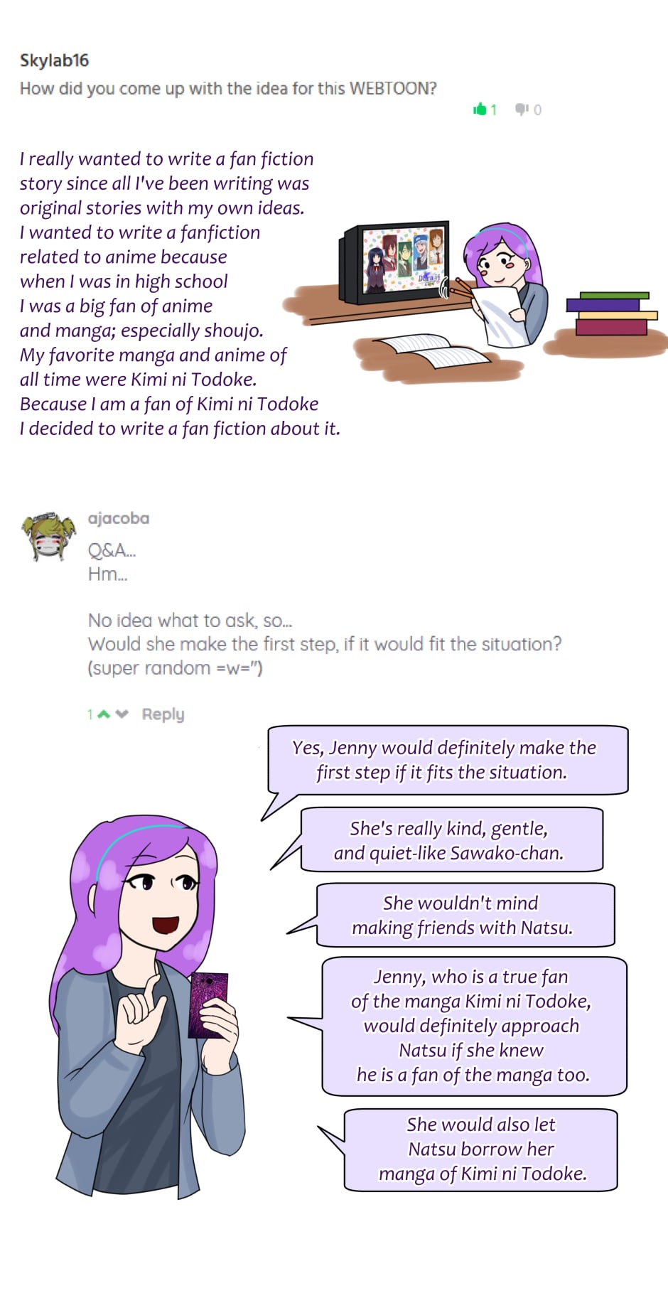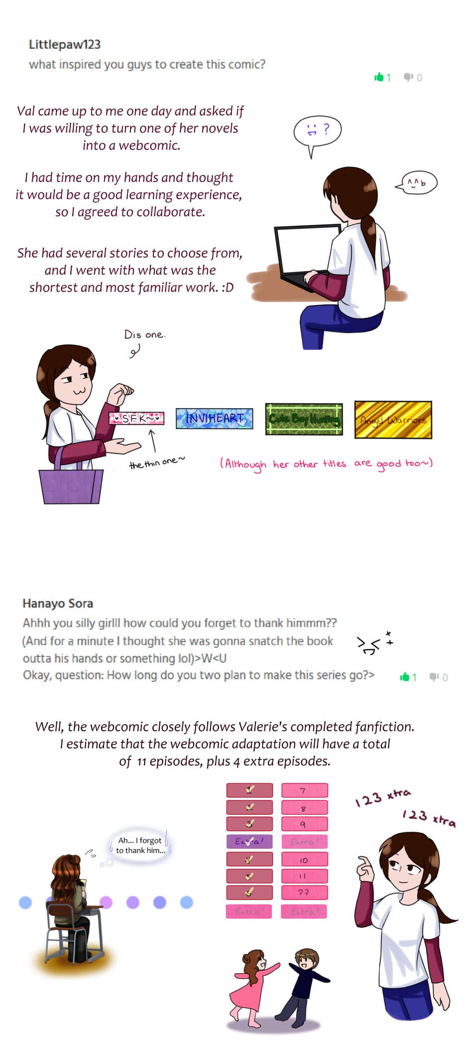 Thank you everyone from Tapas and Webtoons for the lovely questions, and for being so patient! Hope you enjoyed this extra; we'll be back by the end of September!