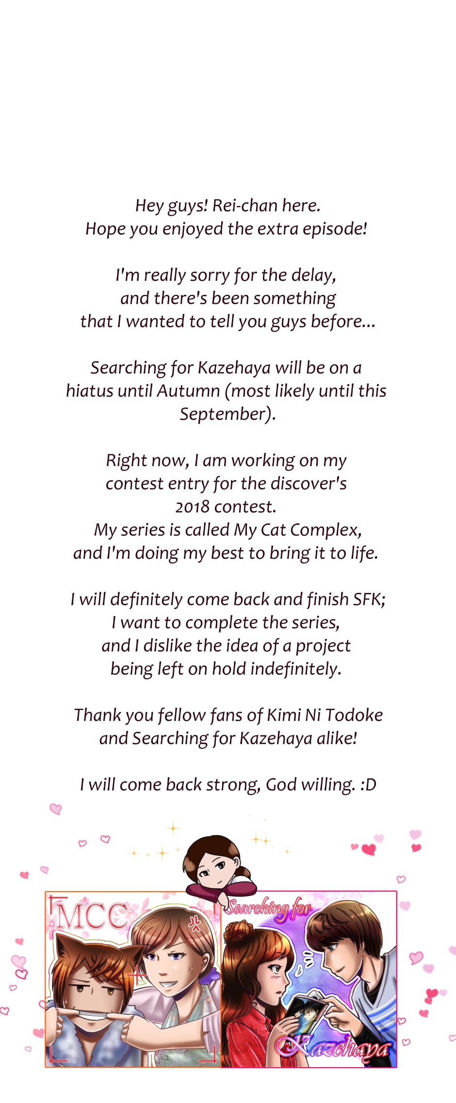 Hi! It's me, Rei-chan from Twinblades (The artist/illustrator of Searching For Kazehaya)