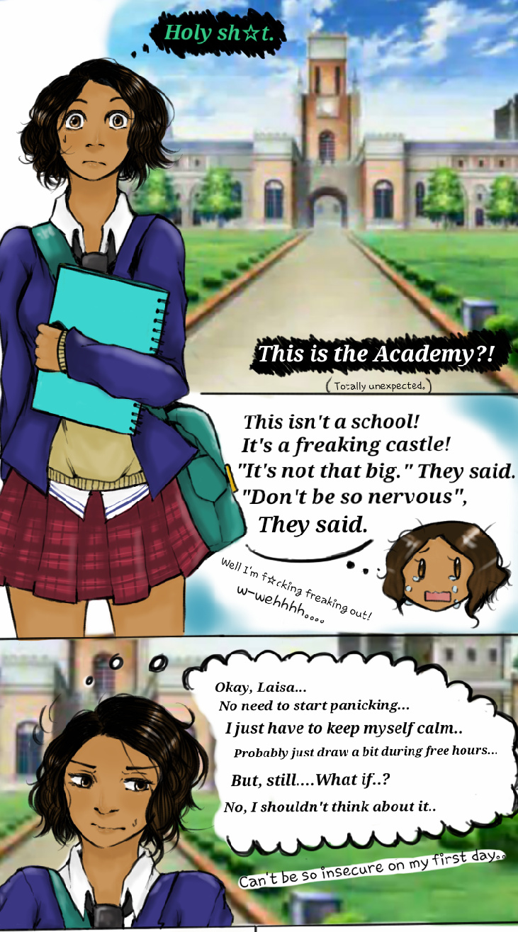 It may be long for the next pages to come along.. (Due to me being stupid and accidentally snapping a part of my pen stylus.;-;) And I may switch to traditional art on some pages from time to time...But, still, I hope you enjoy the first page of Hetalia Academy!