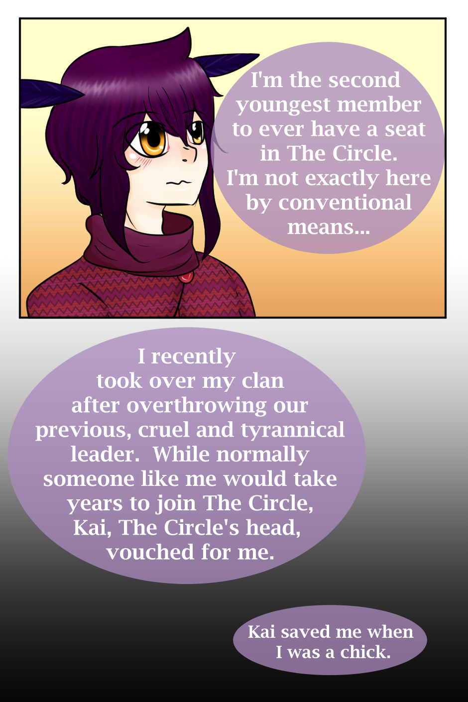 This one has more of Jeremy's background! He's a nervous bundle of feathers, he keeps his cool pretty well though.