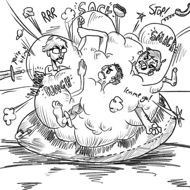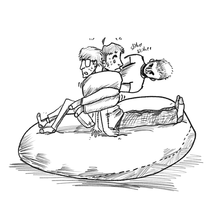 So, a little bit of background on this one: This was a game that happened on my floor every so often. Noah would try to go to sleep, only to be grabbed by Aaron and Andrew. They would then wrestle for up to an hour. In this comic, Noah is the one holding Aaron and Andrew, which wouldn't normally happen in real life. I just like how this comic came out. Also, first instance of me in the comic! Yay!
