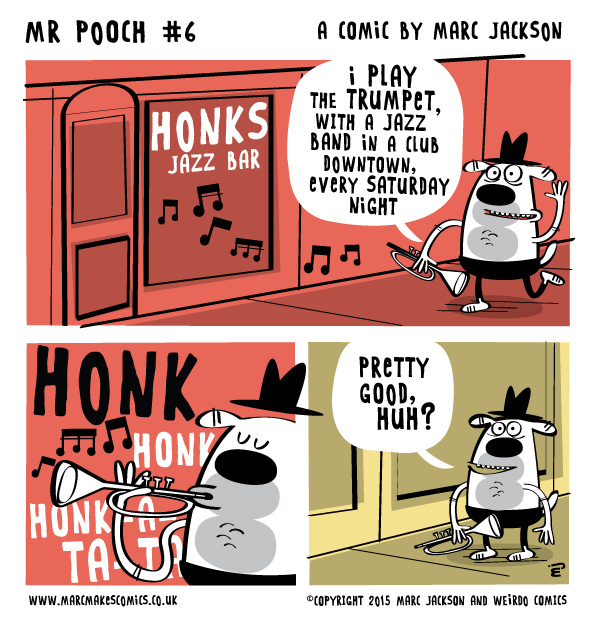 Mr Pooch plays the trumpet