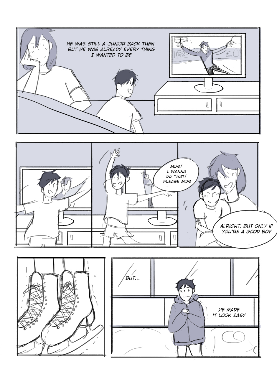 Now, 2 years later, Kiss and Cry follows Milo- a professional figure skater- as he focuses on the upcoming World Championship. But his desire to win runs deeper than just gold and glory. When an unexpected competitor who is insistent on butting heads and old promises come back to light Milo finds his world shaken up yet again.