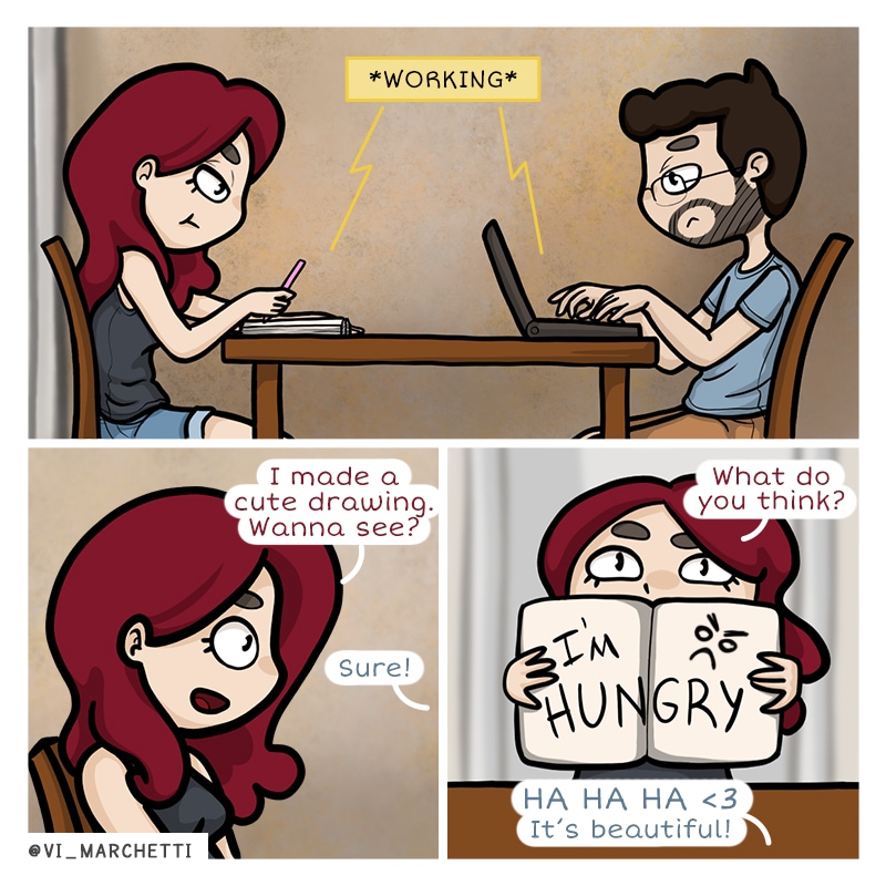 Yes, I do have a double-page spread in my sketchbook with the words "I'm hungry" written across.