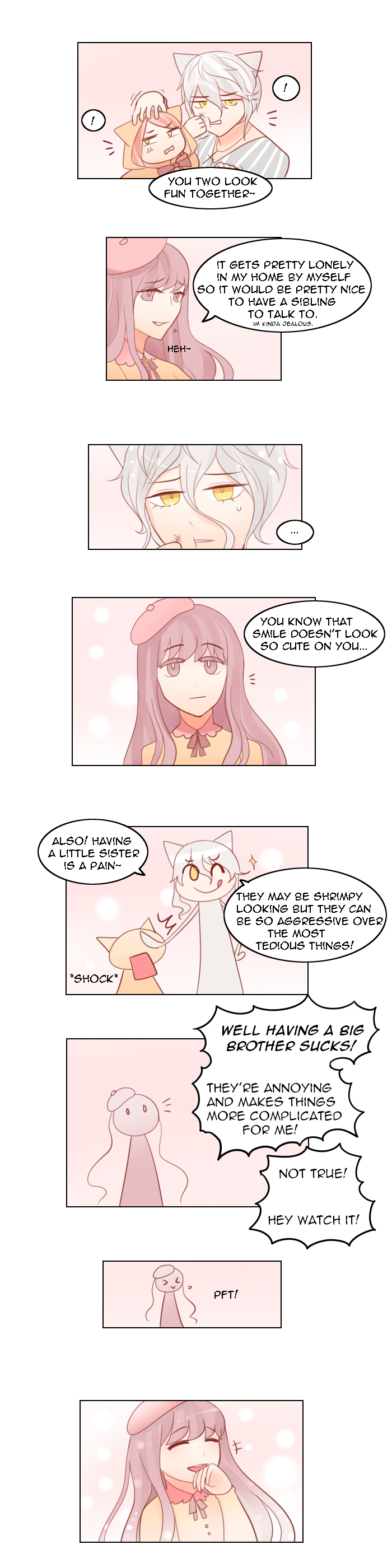 EVERYONE IN THIS COMIC IS SO WHOLESOME ... :'333 i really like everyone's character design as well!! would you ever make another side story on how the two met? they are so cute!!!