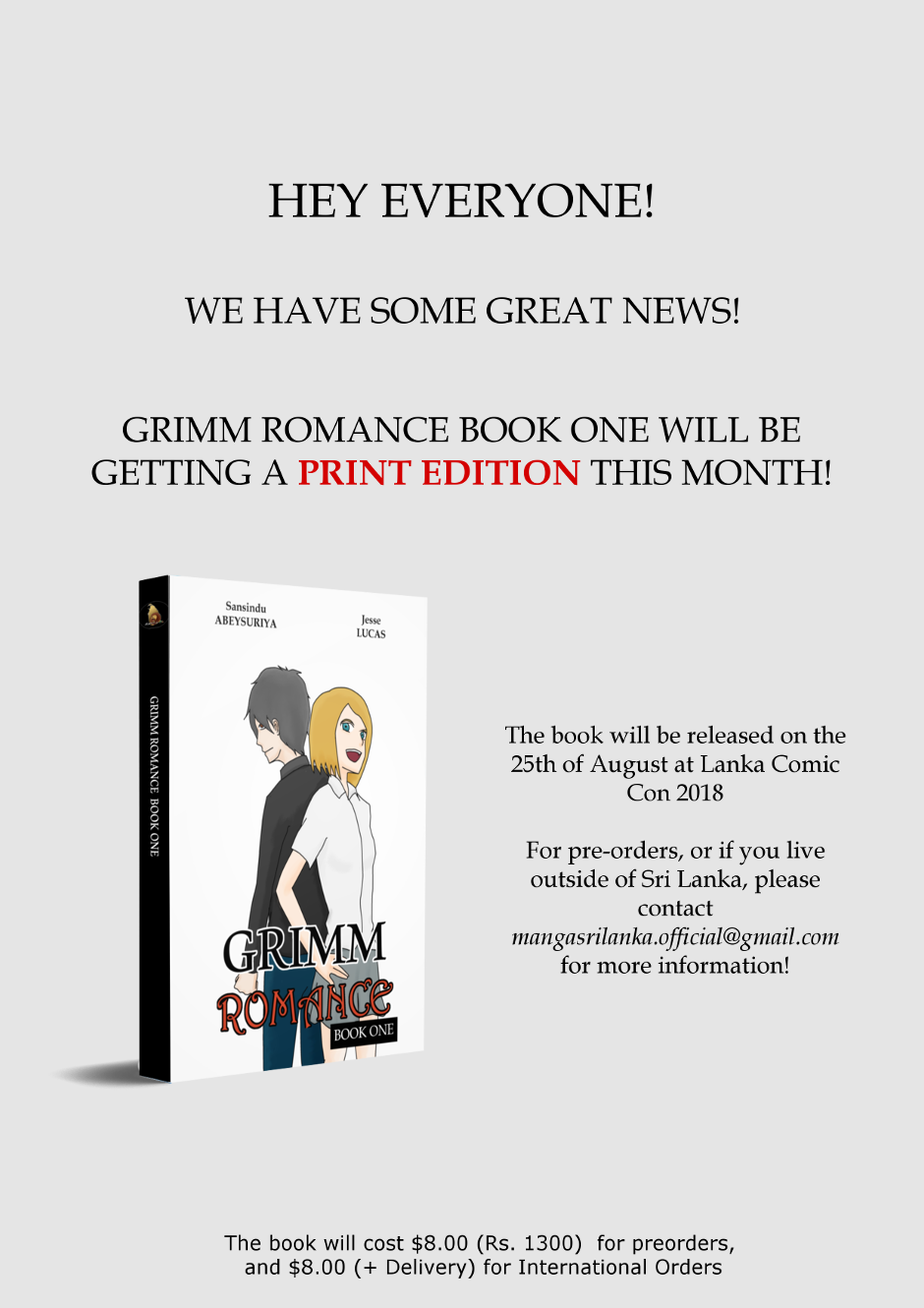 For pre-orders and International Orders (Outside of Sri Lanka) please contact mangasrilanka.official@gmail.com Thank you for your support! <3