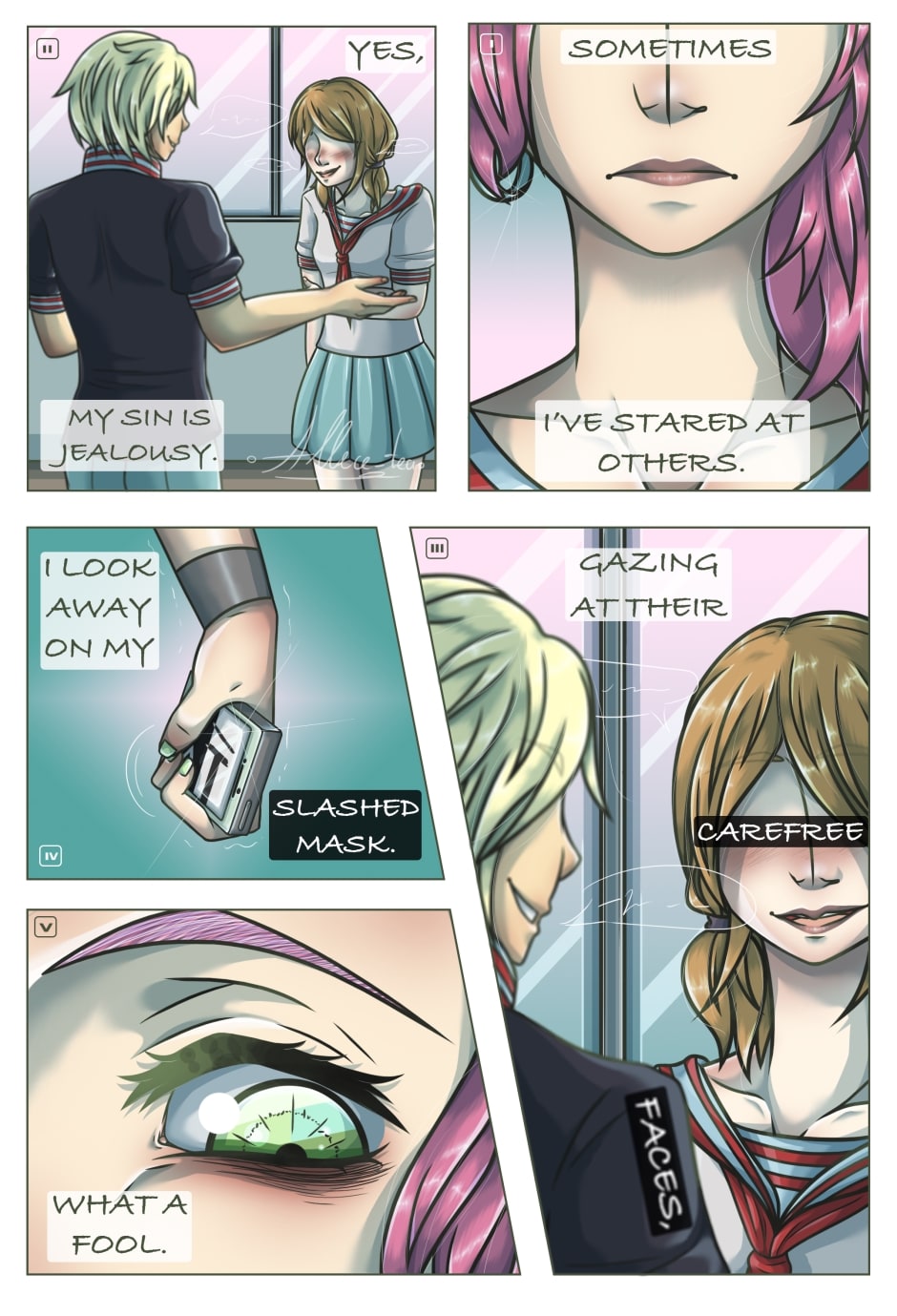 The 4 short stories about the girls whose lives were woven with despair. Each of them possessed the sin which, in the end, led to their downfall. The Copycat’s Play - The story of a girl, who fell into her own snares. The Chase of a Lovesick - The story of a girl, who drowned in her hope for love. The Truth from the Paranoiac - The story of a girl, whose worries defined her life. The Cursed Doppelgänger - The story of a girl, who was confused with her reflection.