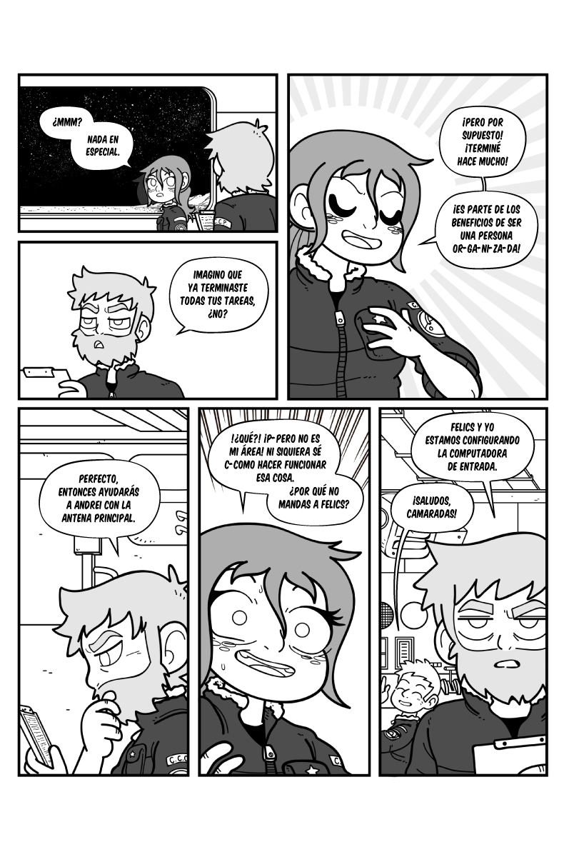 Me gusta bastante el estilo de dibujo y la historia esta realmente interesante, es el primer comic con temática espacial que leo en Tapas.