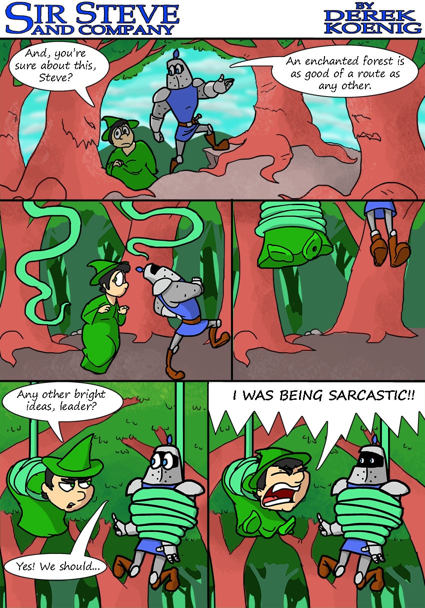 I love all the expressions in this one. Very well done. That first frame is my favorite. I love Edwin's pose and expression there. Like others have also said, brilliant idea with Sir Steve's smaller eyes in that last panel.